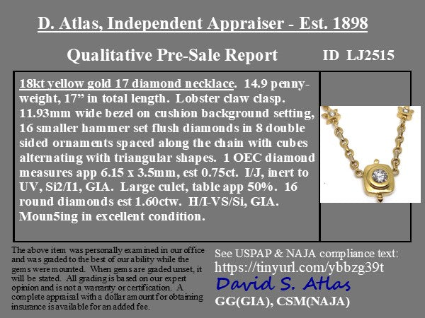2.35ctw Vintage Old European Cut Diamond Bezel Necklace, Italian