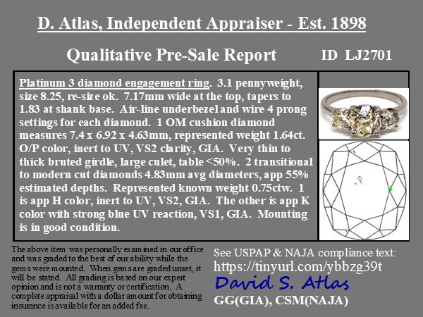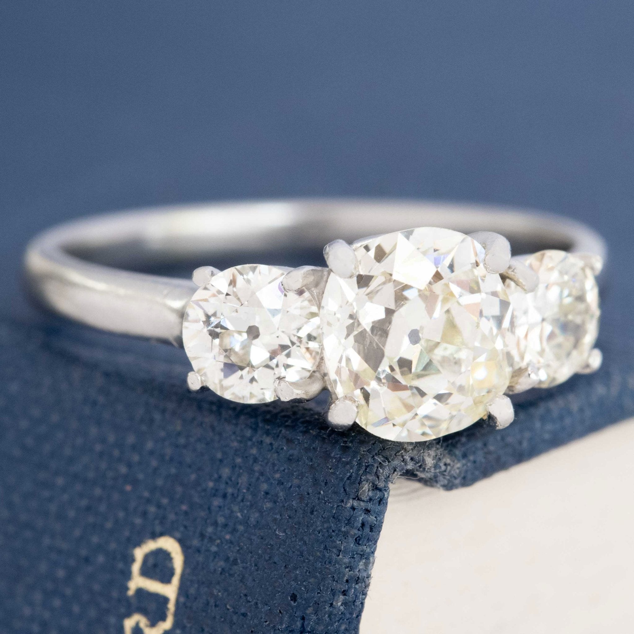 2.39ctw Vintage Old Mine Cut Diamond Trilogy Ring