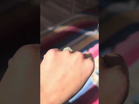 A trilogy ring with perfect proportions! The center old mine cut diamond has a beautiful, soft elongated shape, flanked by 2 old vintage round diamonds. The proportions allow the center stone to remain the star of the show, and the side diamonds complement it perfectly. The old mine cushion shows a whisper of a color - like looking at antique lace!