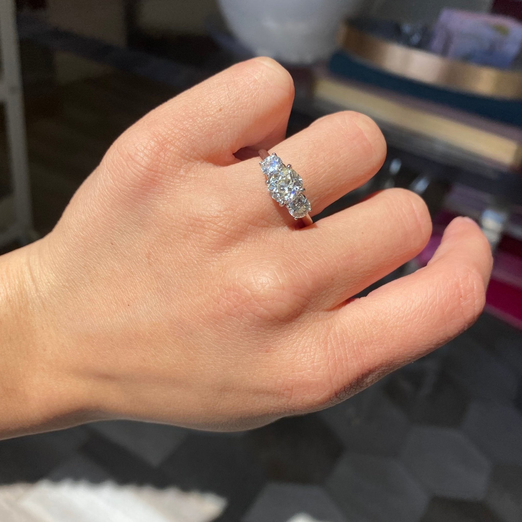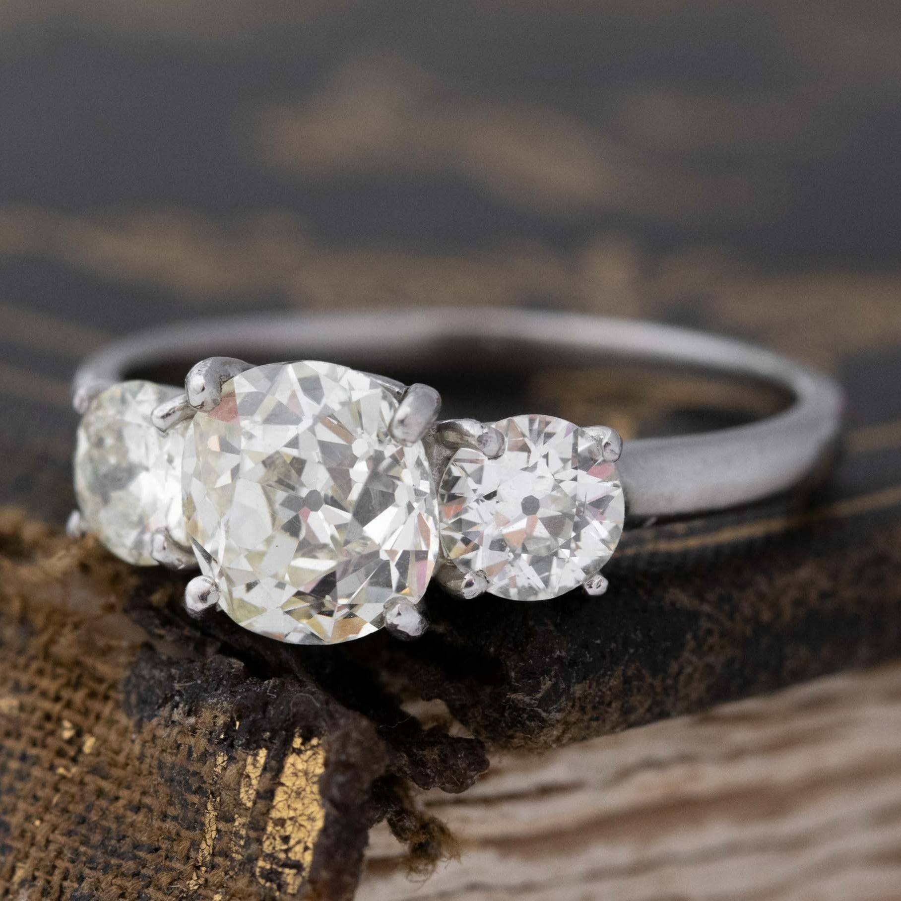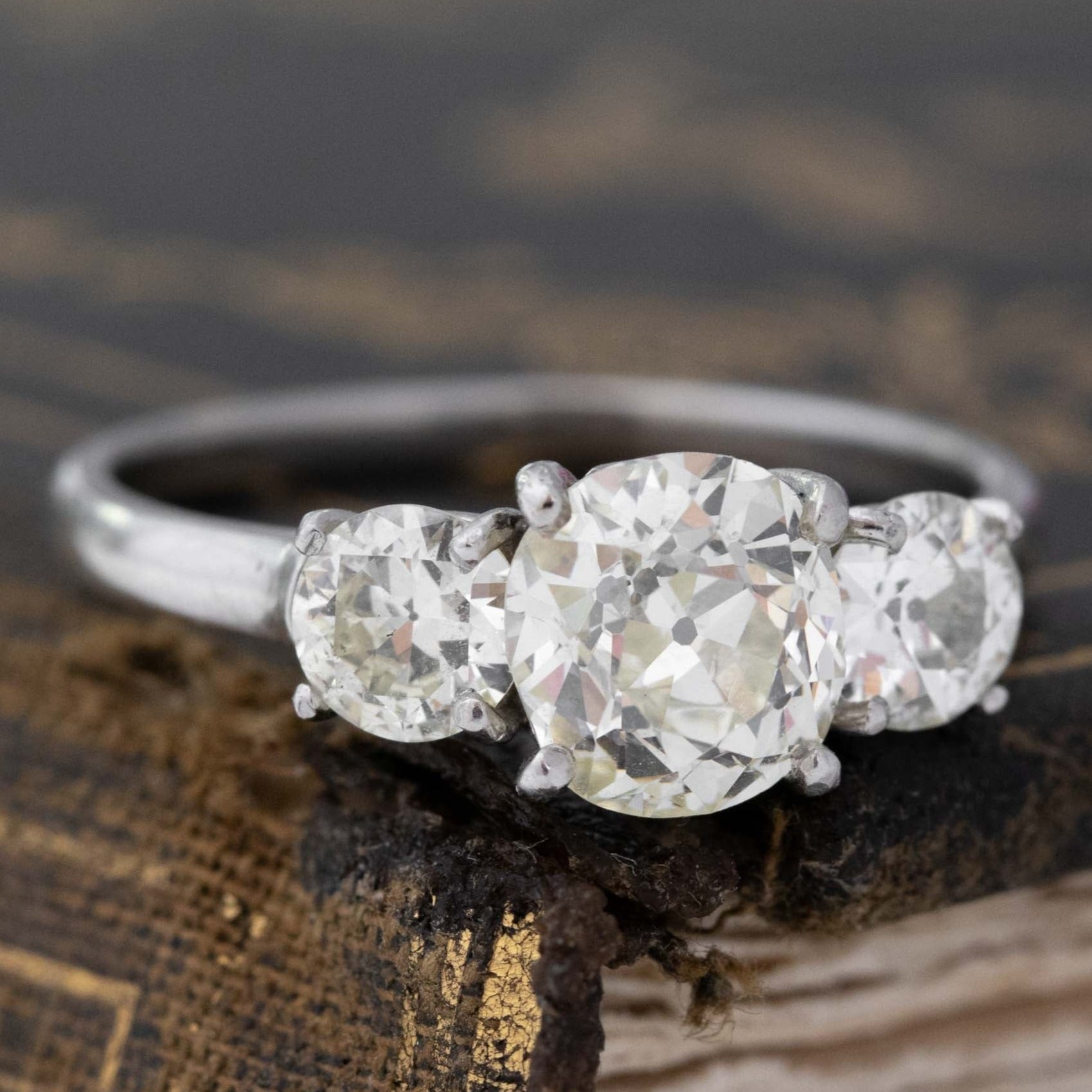 2.39ctw Vintage Old Mine Cut Diamond Trilogy Ring