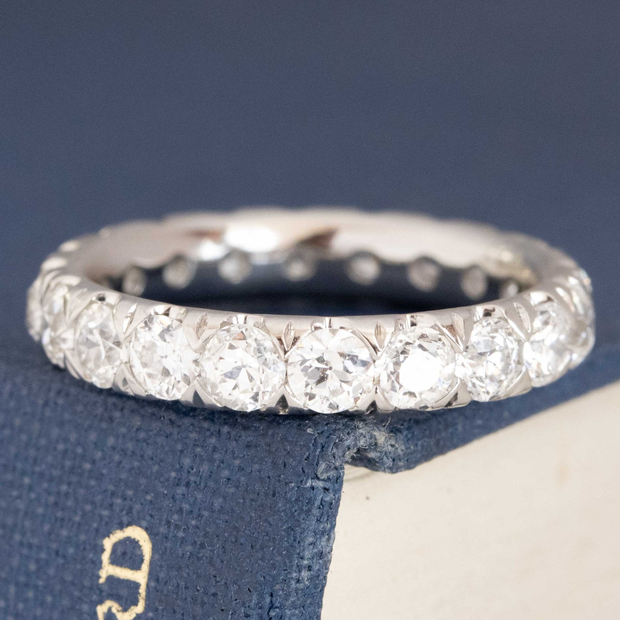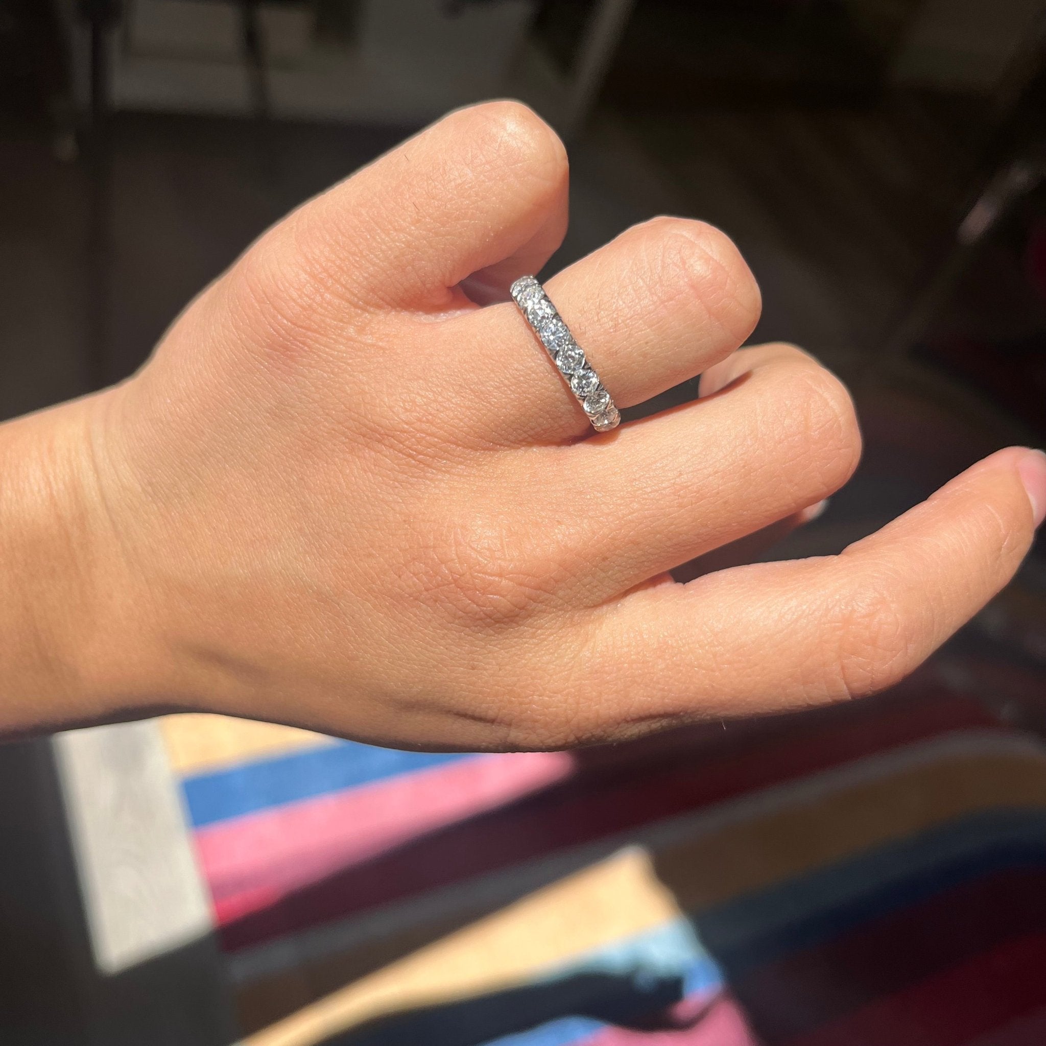Always timeless and a classic - the eternity band! Ours is set with authentic, upcycled old European cut diamonds with broad chunky facets and super white face up. Low set in platinum, she is the perfect band to add to your stack, or pair with your engagement ring.
