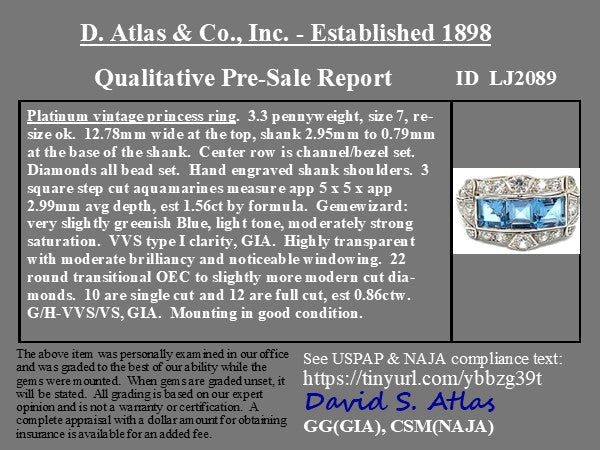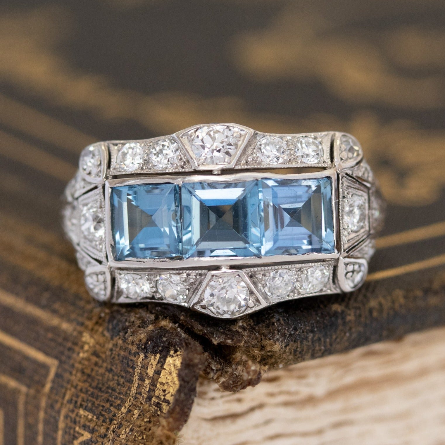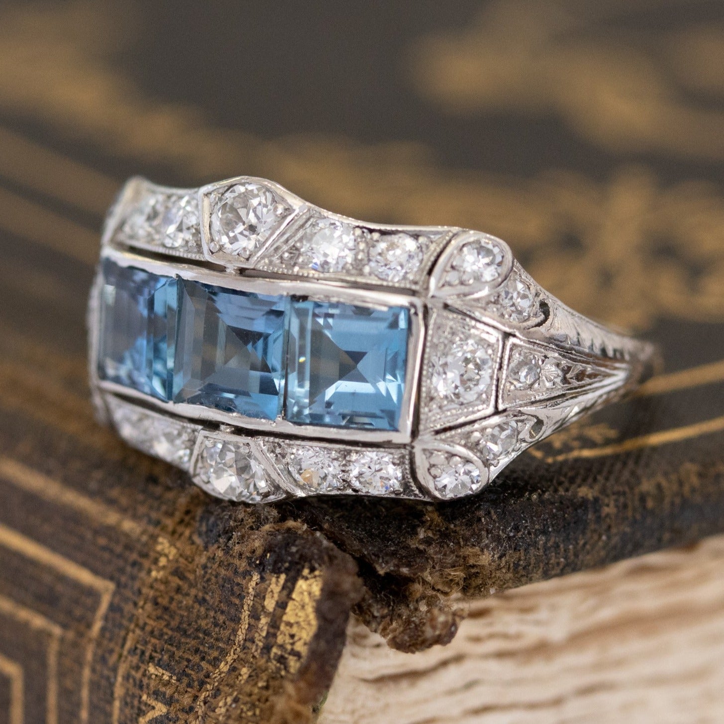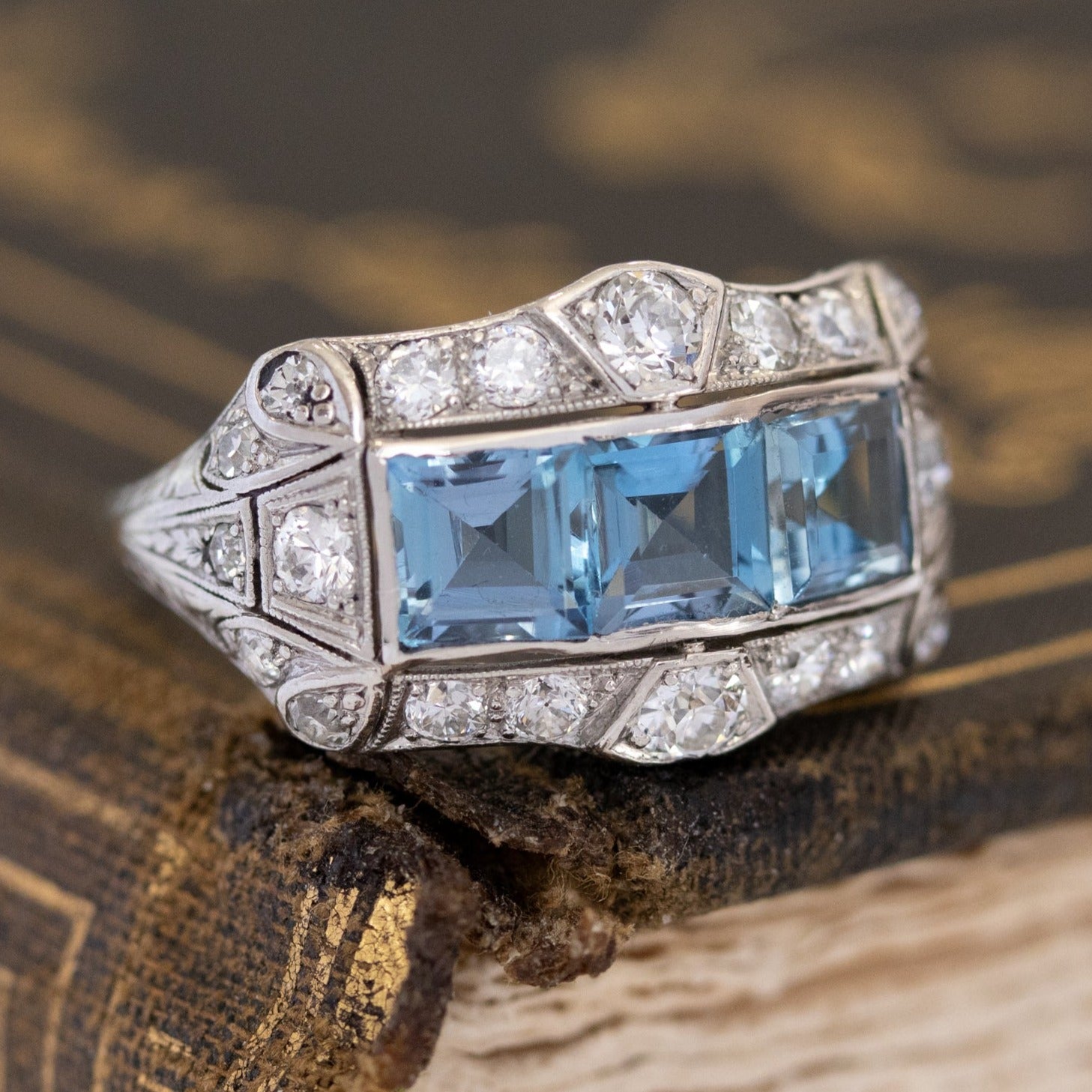 2.42ctw Vintage Diamond & Aquamarine Princess Ring