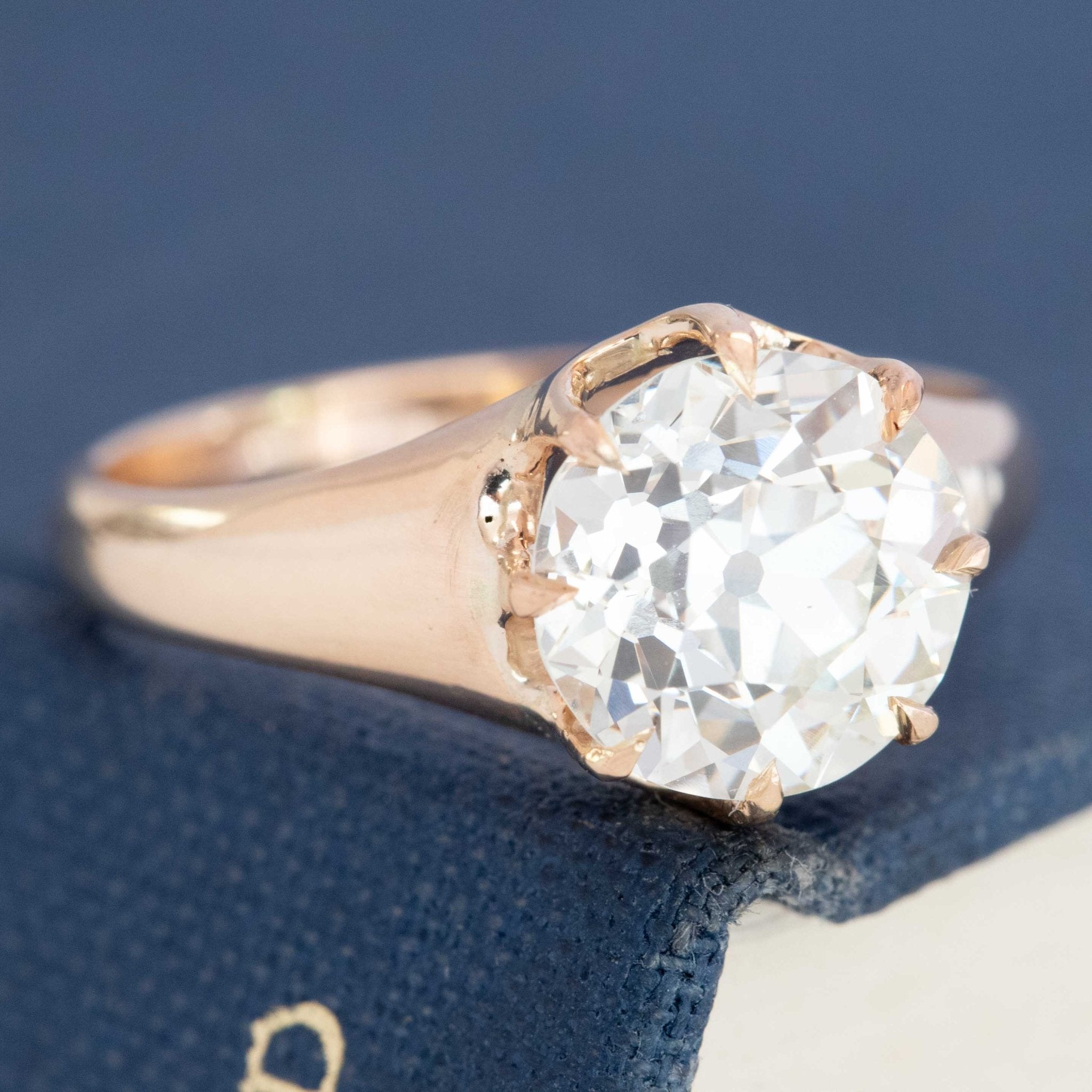 We swoon over this ring! It has everything we love about these antique and vintage solitaires - the diamond is an uber chunky OEC with the classic OEC faceting. The broad facets capture the light and colors of its surroundings - she is a very bright, sparkly, and lively stone! The setting is from the turn of the century, with a soft pink tint that also appears close to yellow gold in certain lighting conditions. And, of course, we love the wider, tapering shank, too! Low profile on the finger, the ring is not just beautiful but also unique and truly one-of-a-kind.
