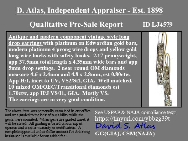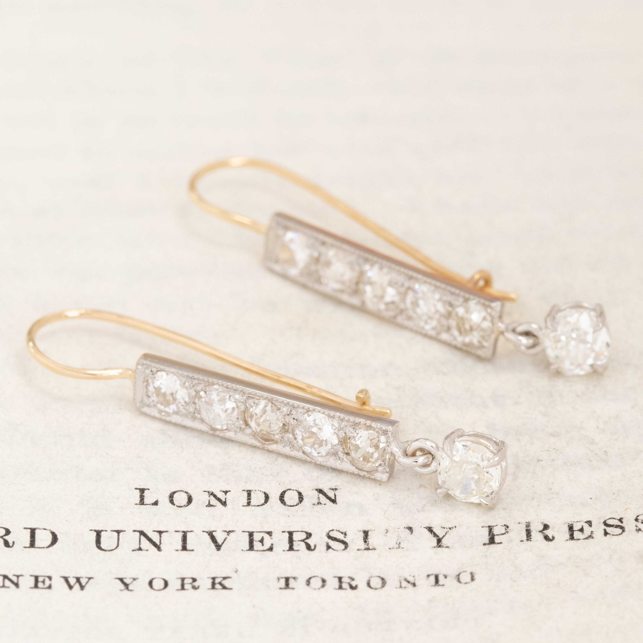 2.50ctw Antique Old European Cut Diamond Bar Drop Earrings