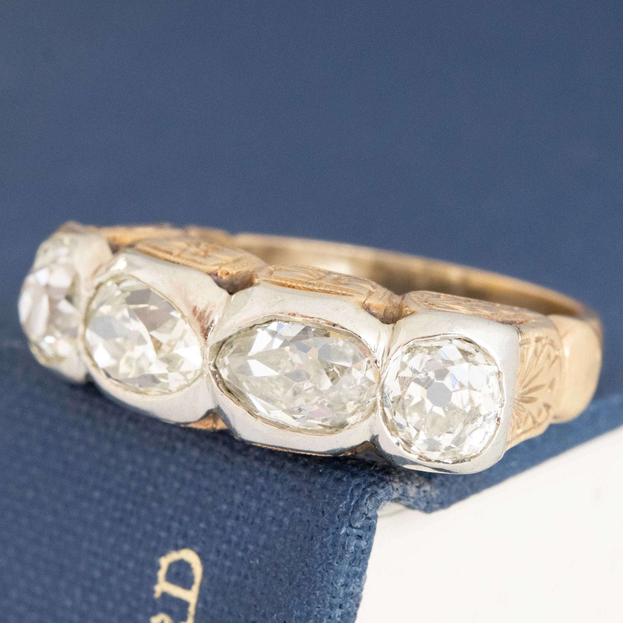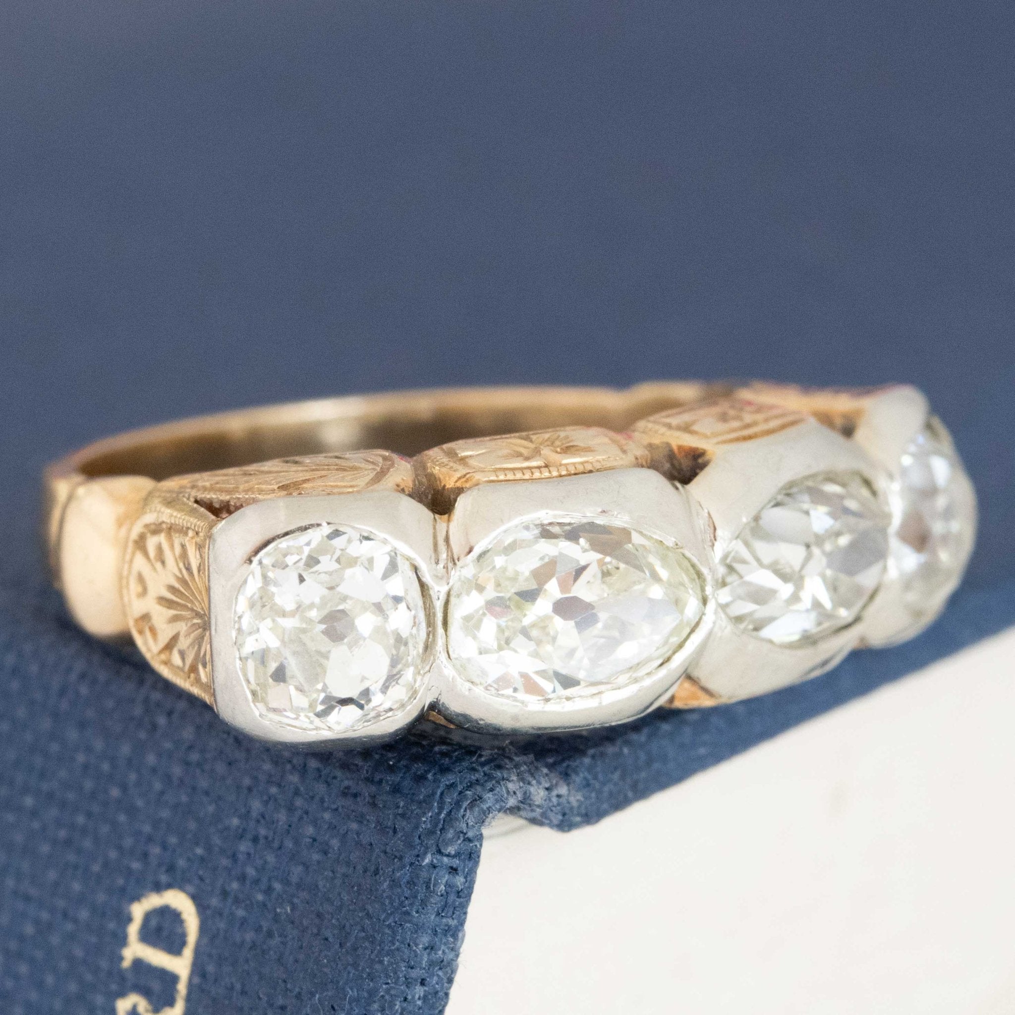 2.50ctw Antique Old Mine & Pear Cut Diamond Mixed Cut 4-Stone Band