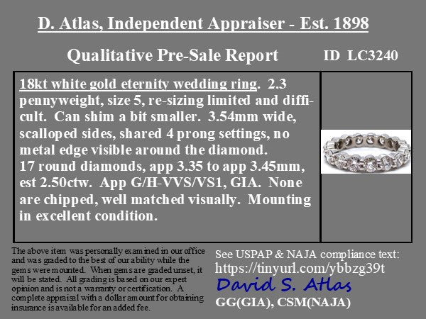 2.50ctw Round Brilliant Cut Diamond Memoire Eternity Band