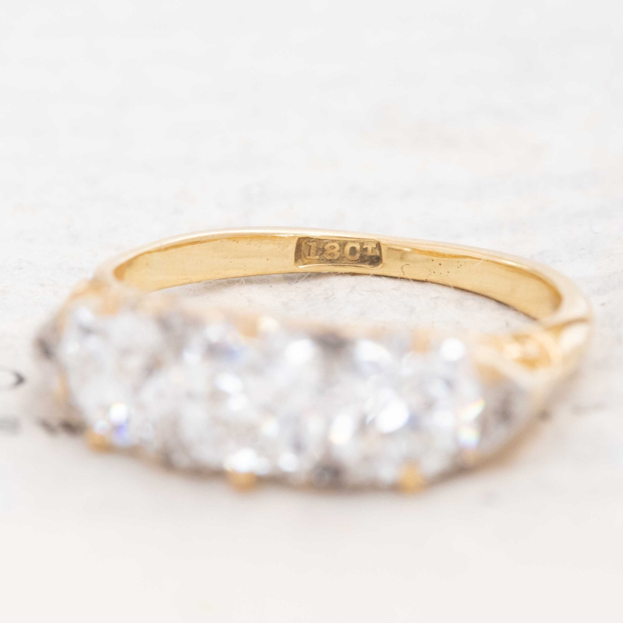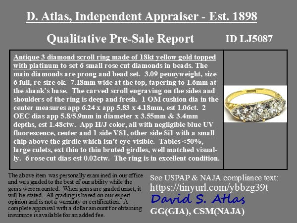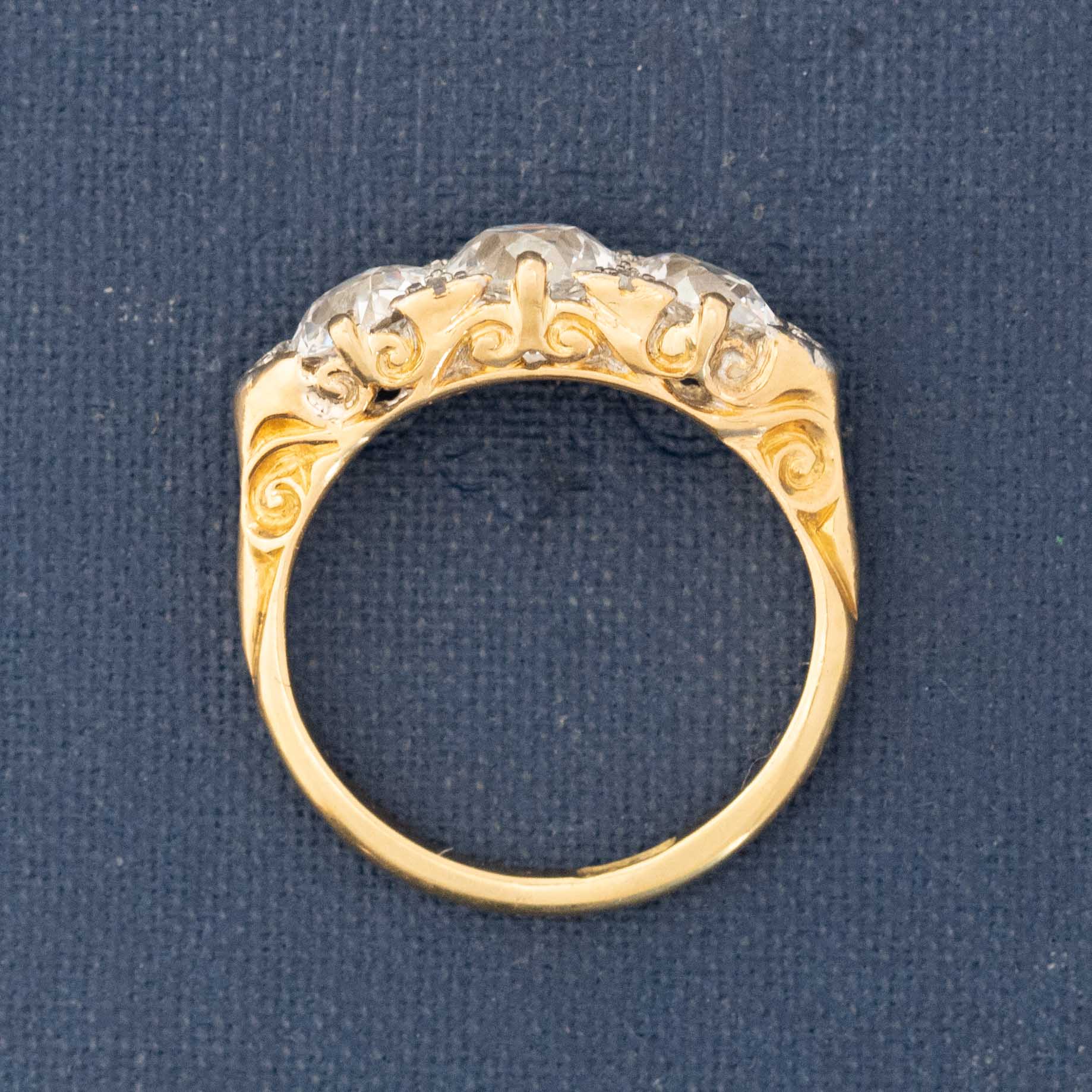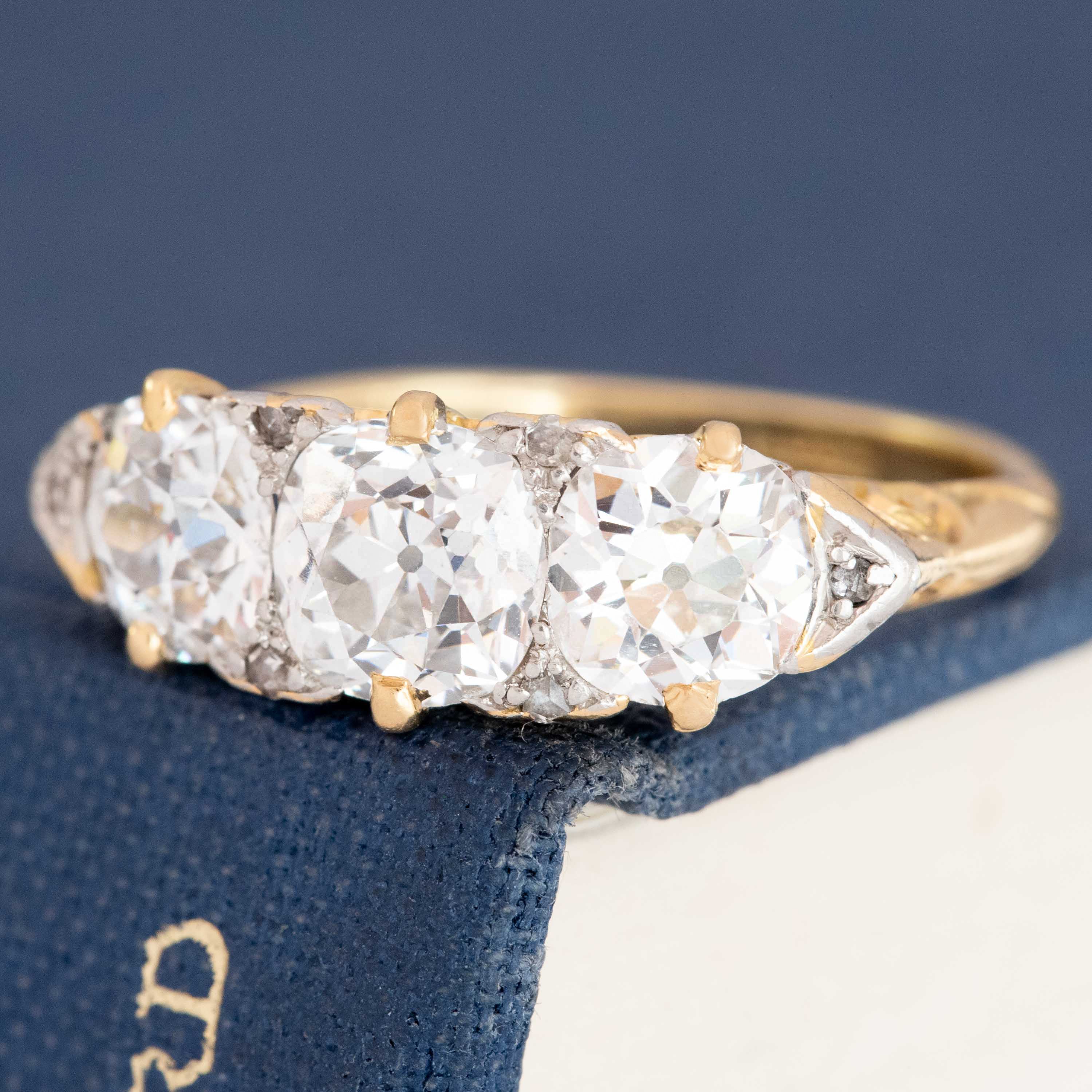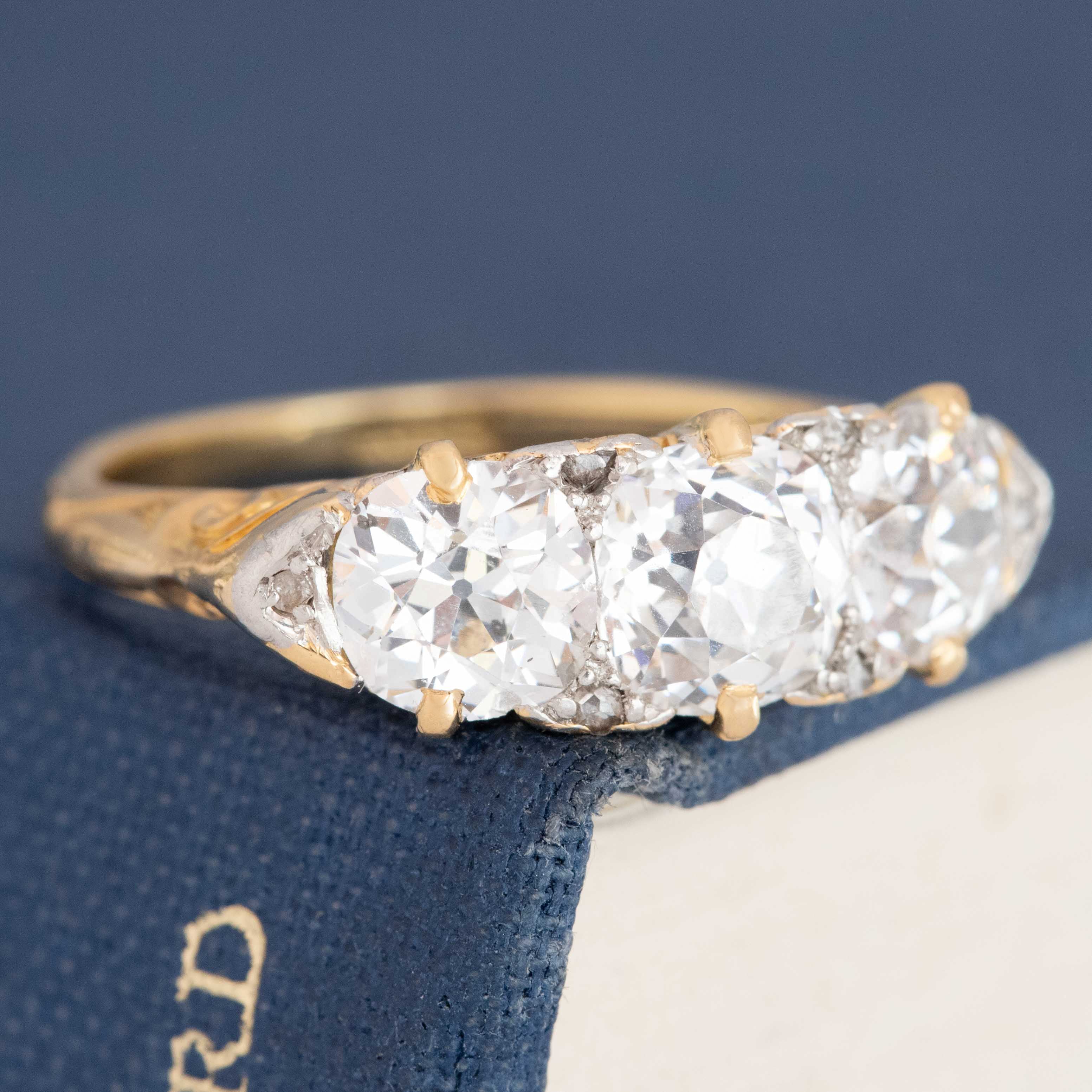 2.56ctw Antique Old Mine Cut Diamond 3-Stome Scroll Ring