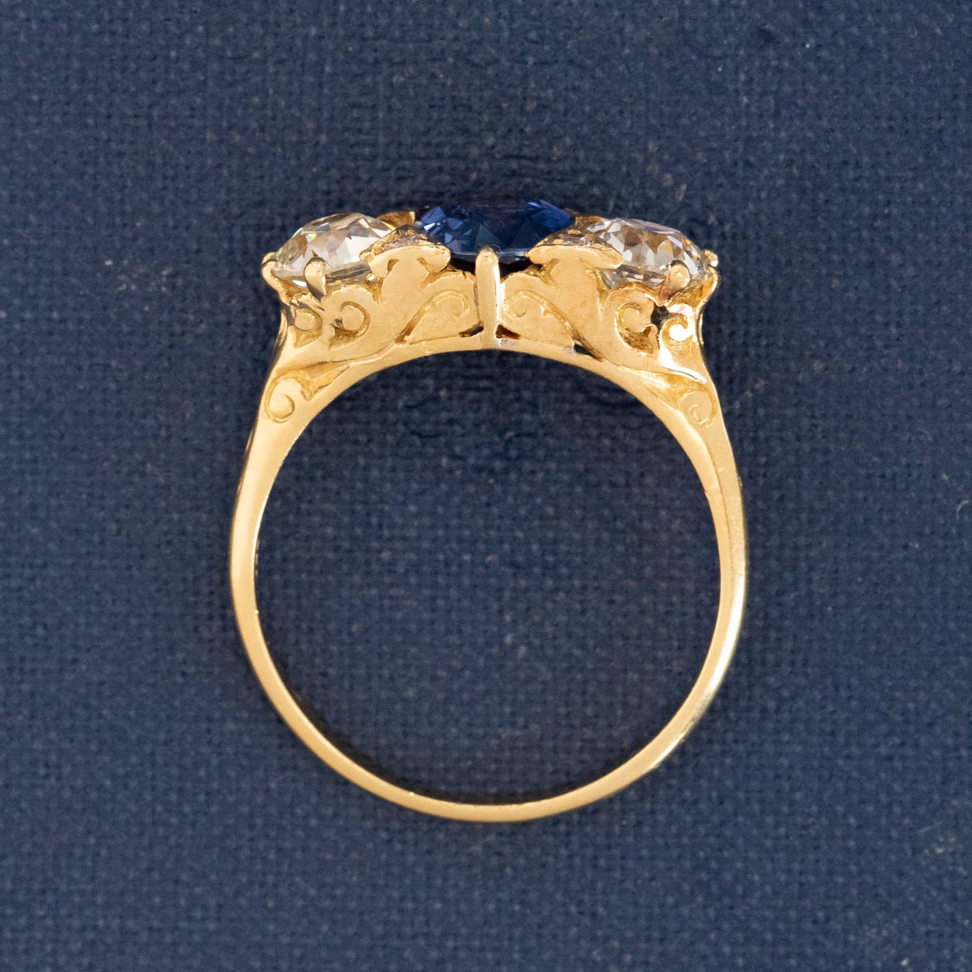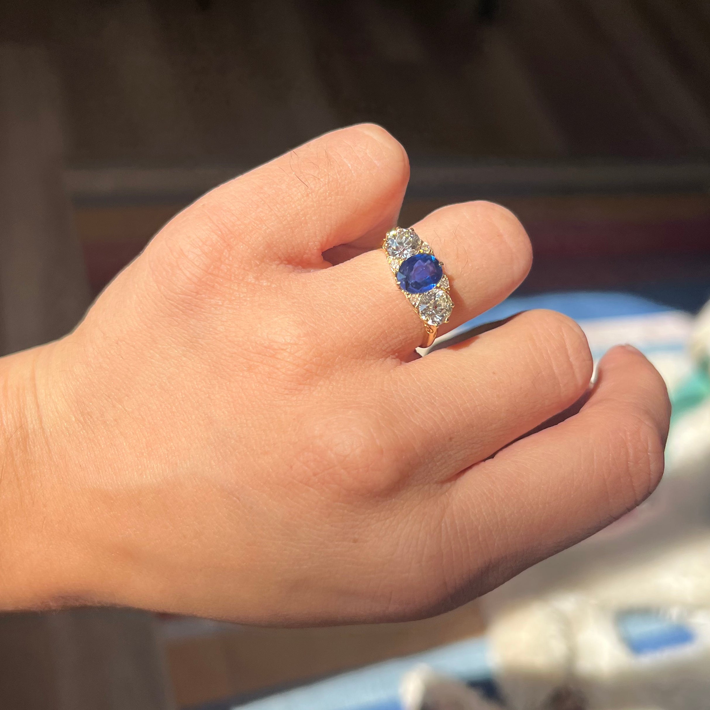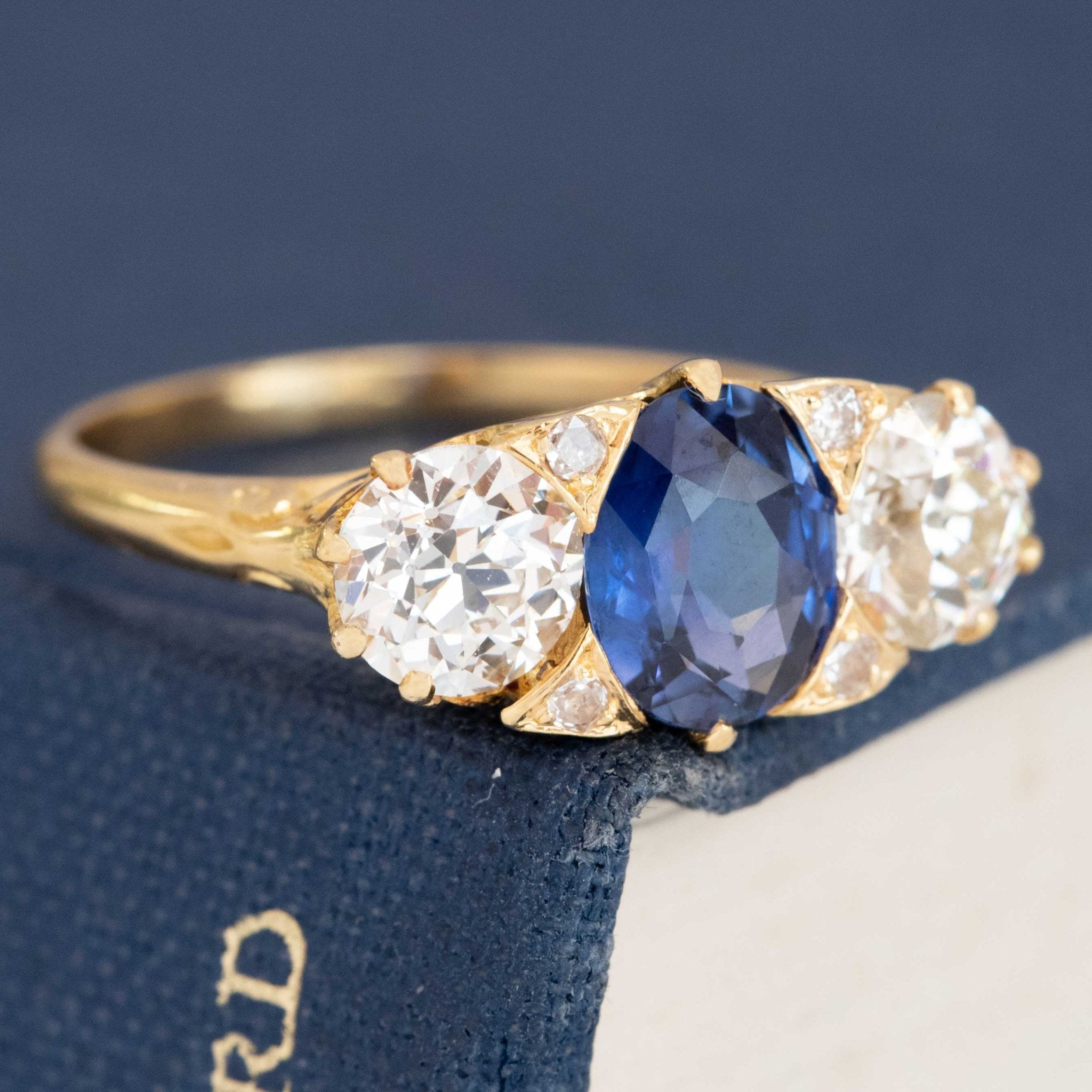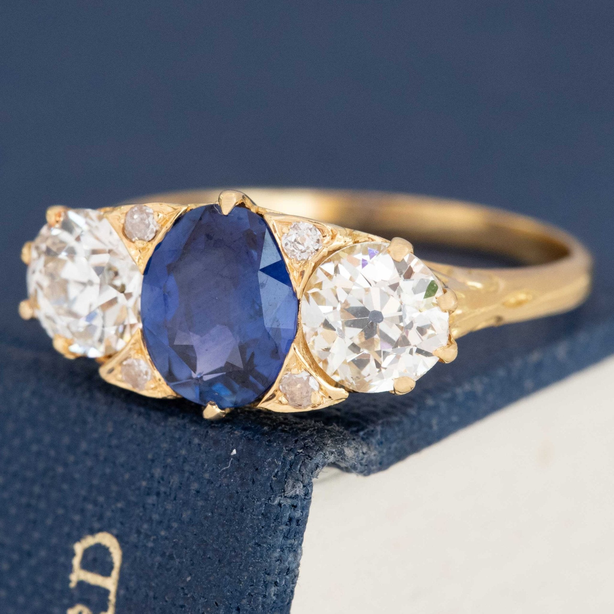 2.62ctw Old European Cut Diamond & Sapphire Trilogy Ring