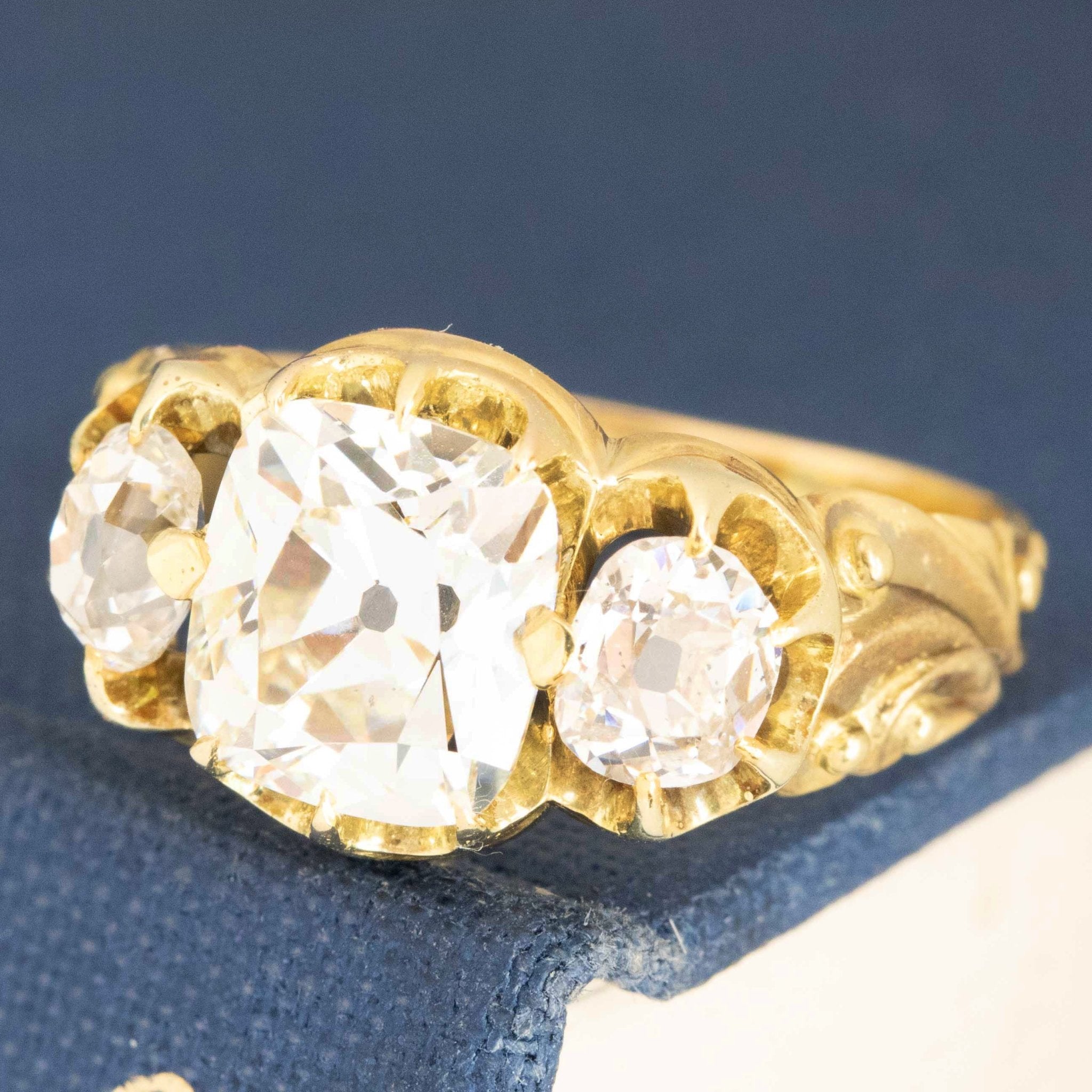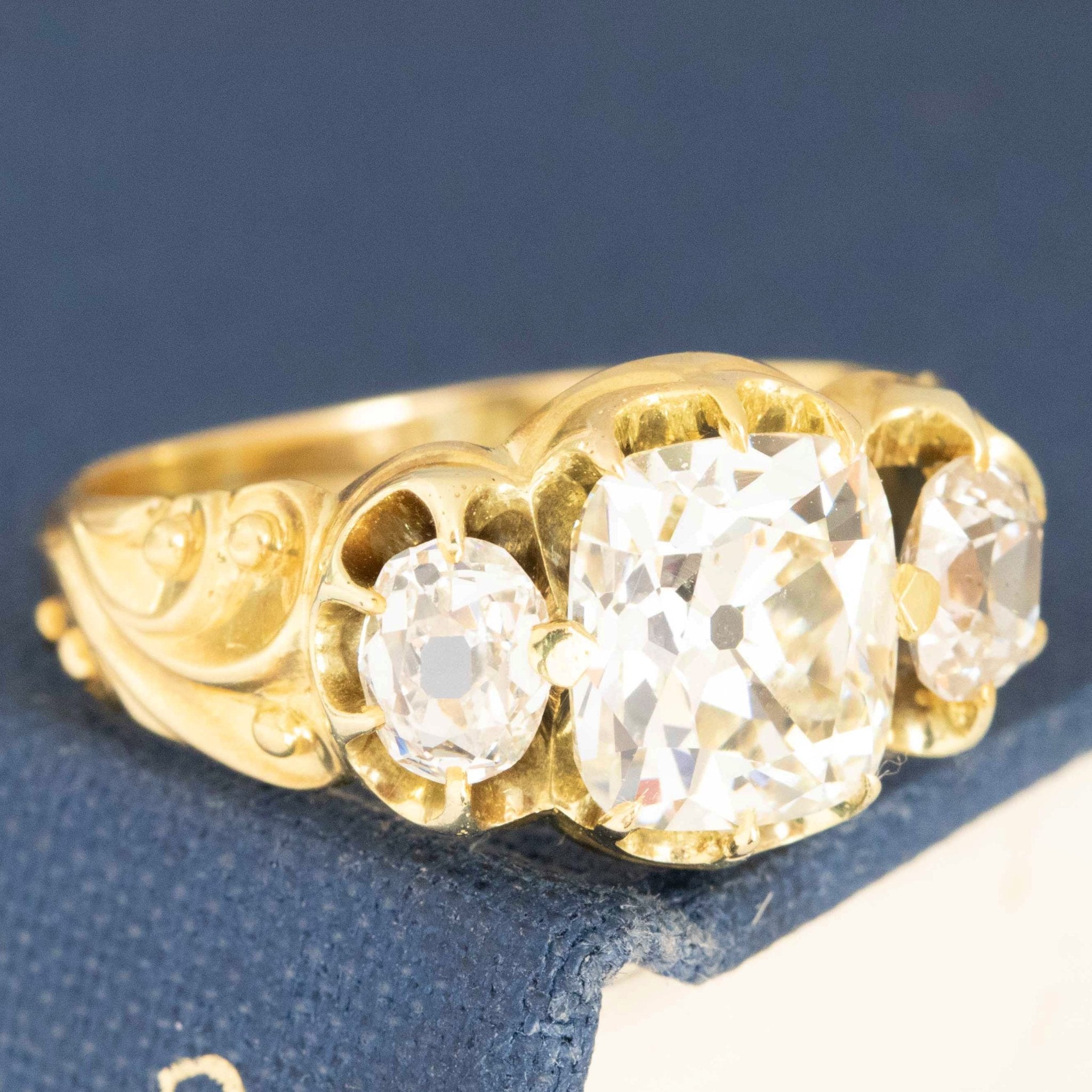 2.63ctw Victorian Old Mine Cut Diamond Trilogy Ring