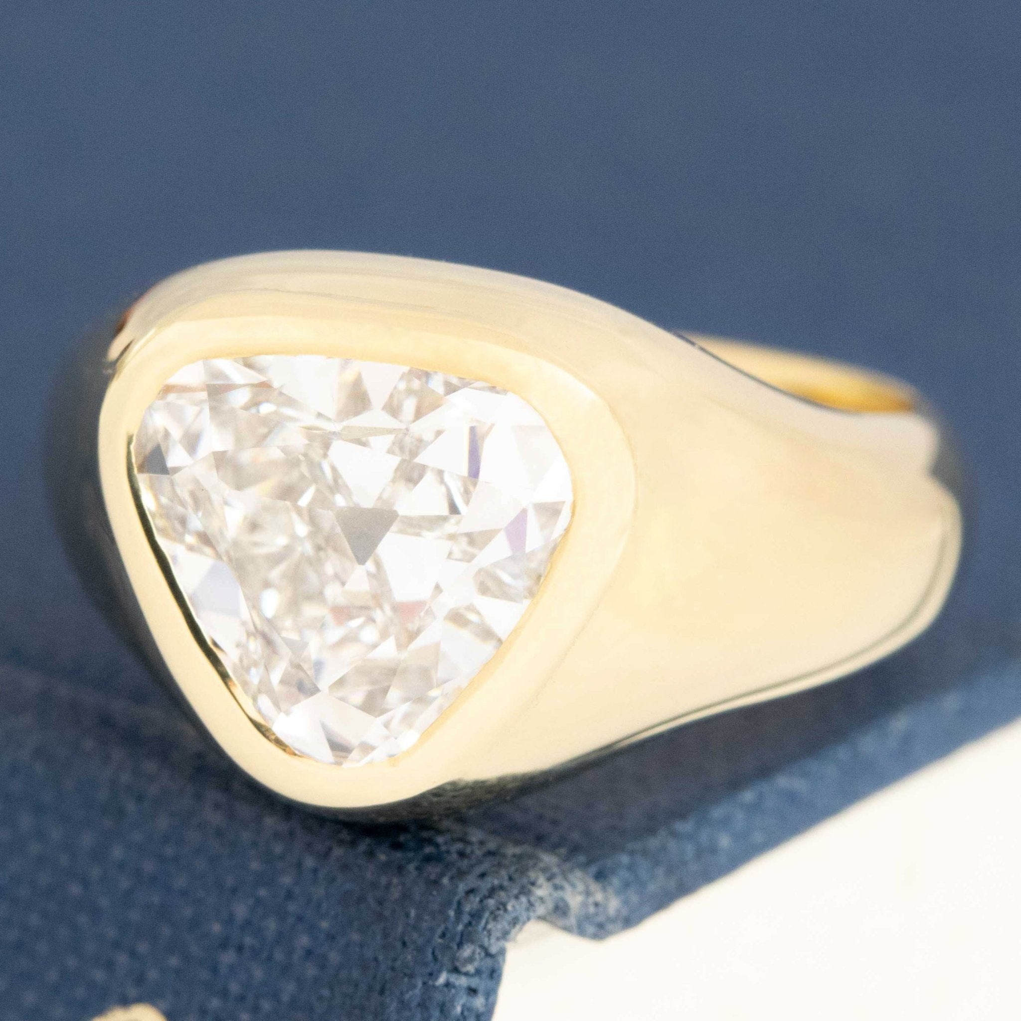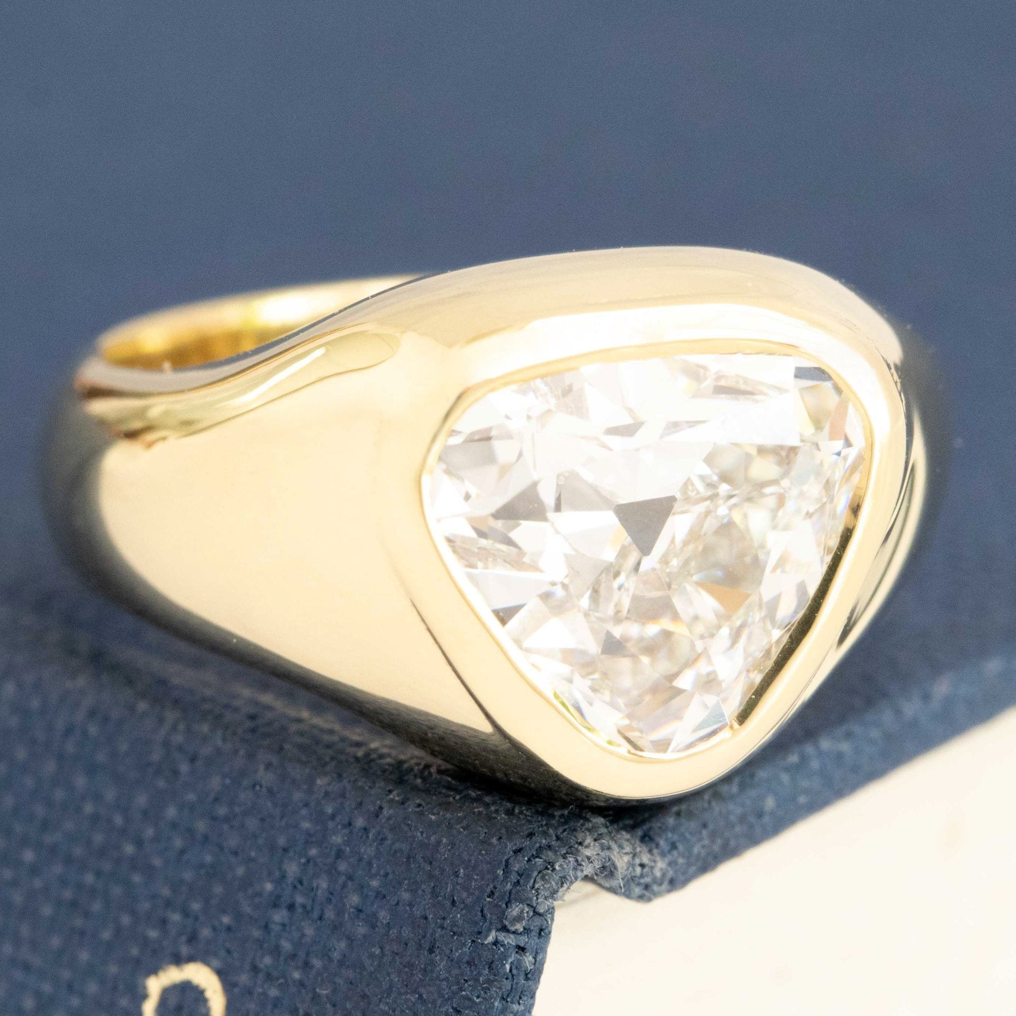 2.71ct Antique Pear/Heart Cut Diamond Bezel Solitaire