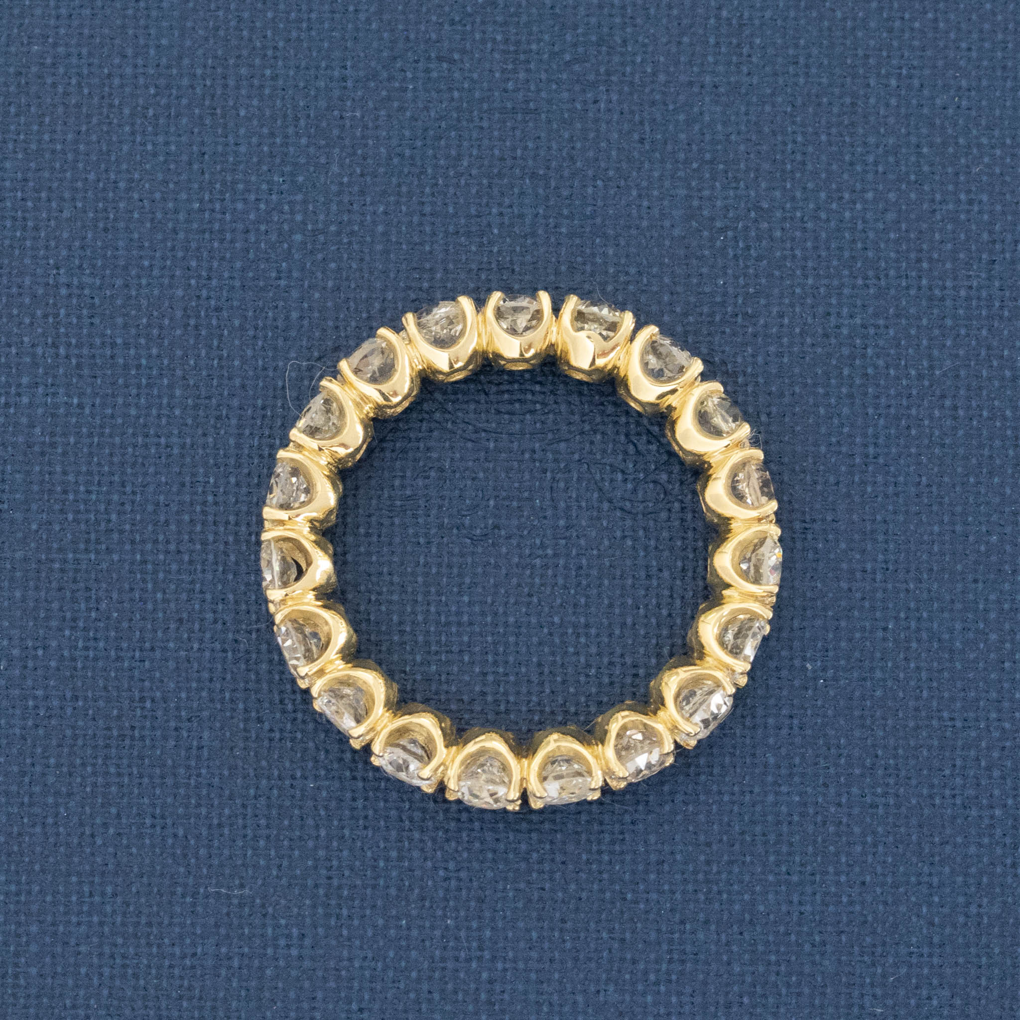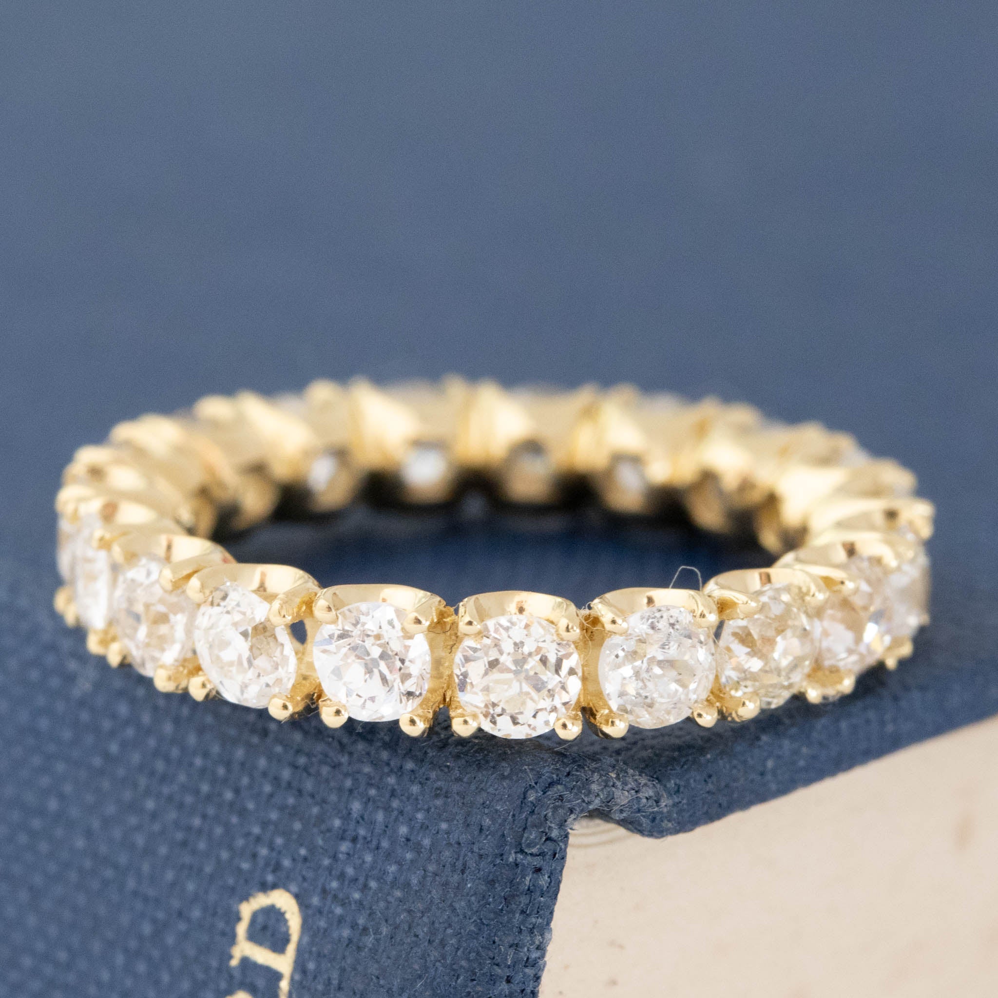 Only the eternity band of our dreams! Because we rarely find antique diamond eternity bands in yellow gold, we decided it was time to create one to offer. The old European cut diamonds are part of a massive parcel of reclaimed loose antique diamond parcel we acquired this year, all matched perfectly to create this band! Chunky and fiery, the diamonds are like little disco balls as they are set in this lower profile band. Perfect for stacking next to your engagement ring, and also a perfect stacker.