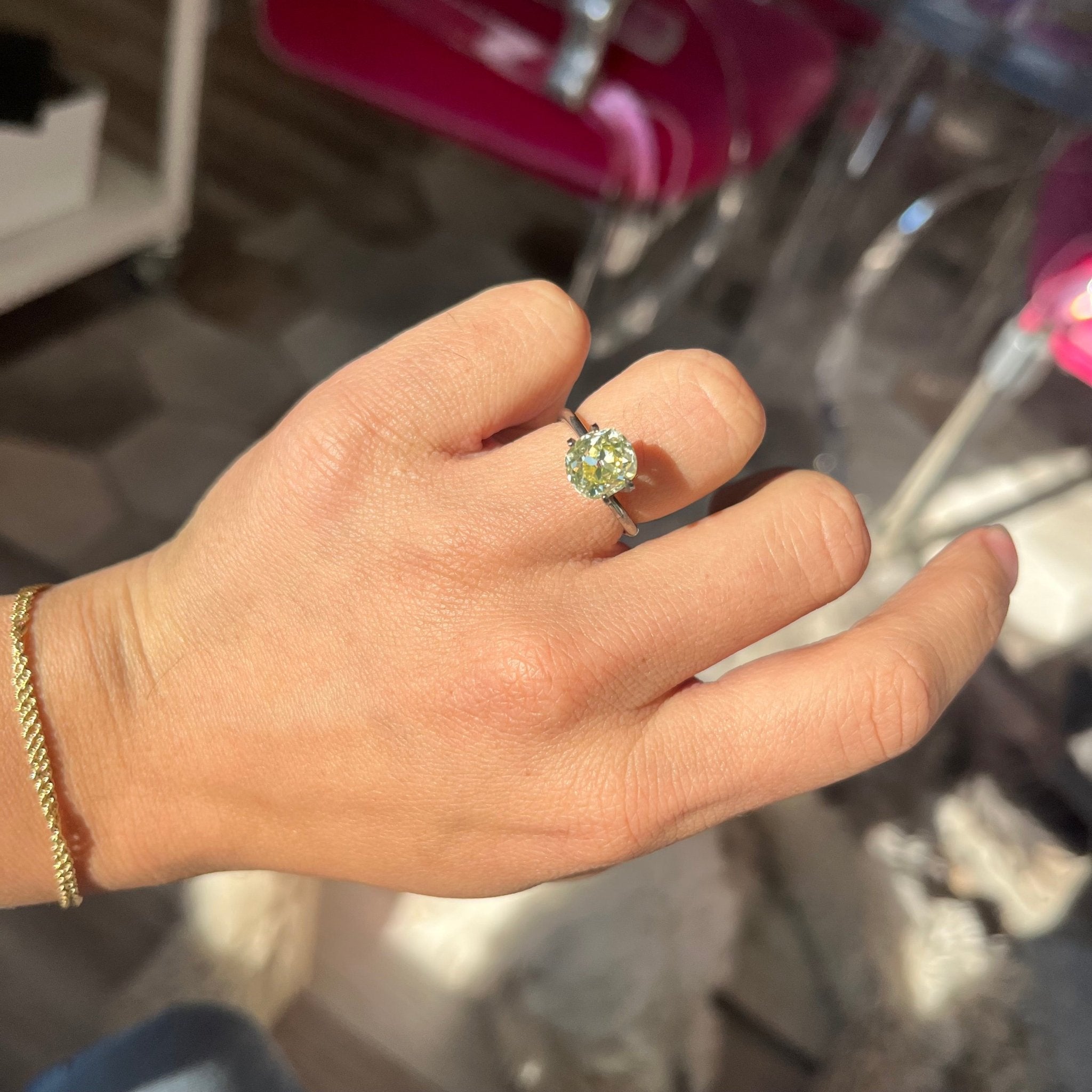Somewhat of a rarity in the market - the true fancy color old mine cuts! This baby has the prettiest yellow color/hue to her - a happy, sunny yellow without any brown modifiers. I imagine her set in a rich, high karat yellow gold mounting to further enhance her color, or perhaps set with icy white side stones? The possibilities are truly endless!