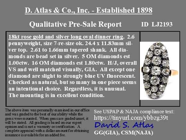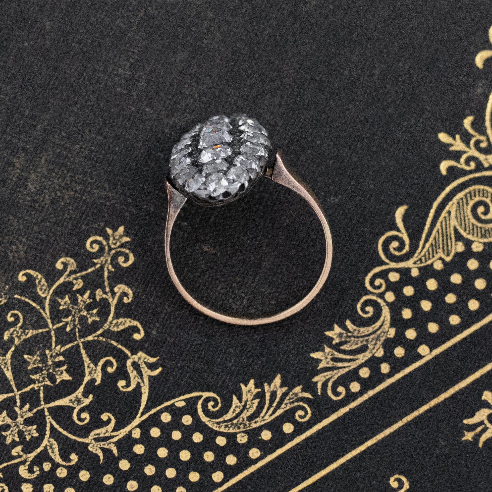 An antique ring style that is getting harder and harder to come by these days, and for good reason. The ring is elegant on the finger, and undeniably a special antique jewels from every angle. Gotta love these chunky old mine cuts! Low set on the finger, the chunky old mine cuts sparkle like little disco balls on the finger.