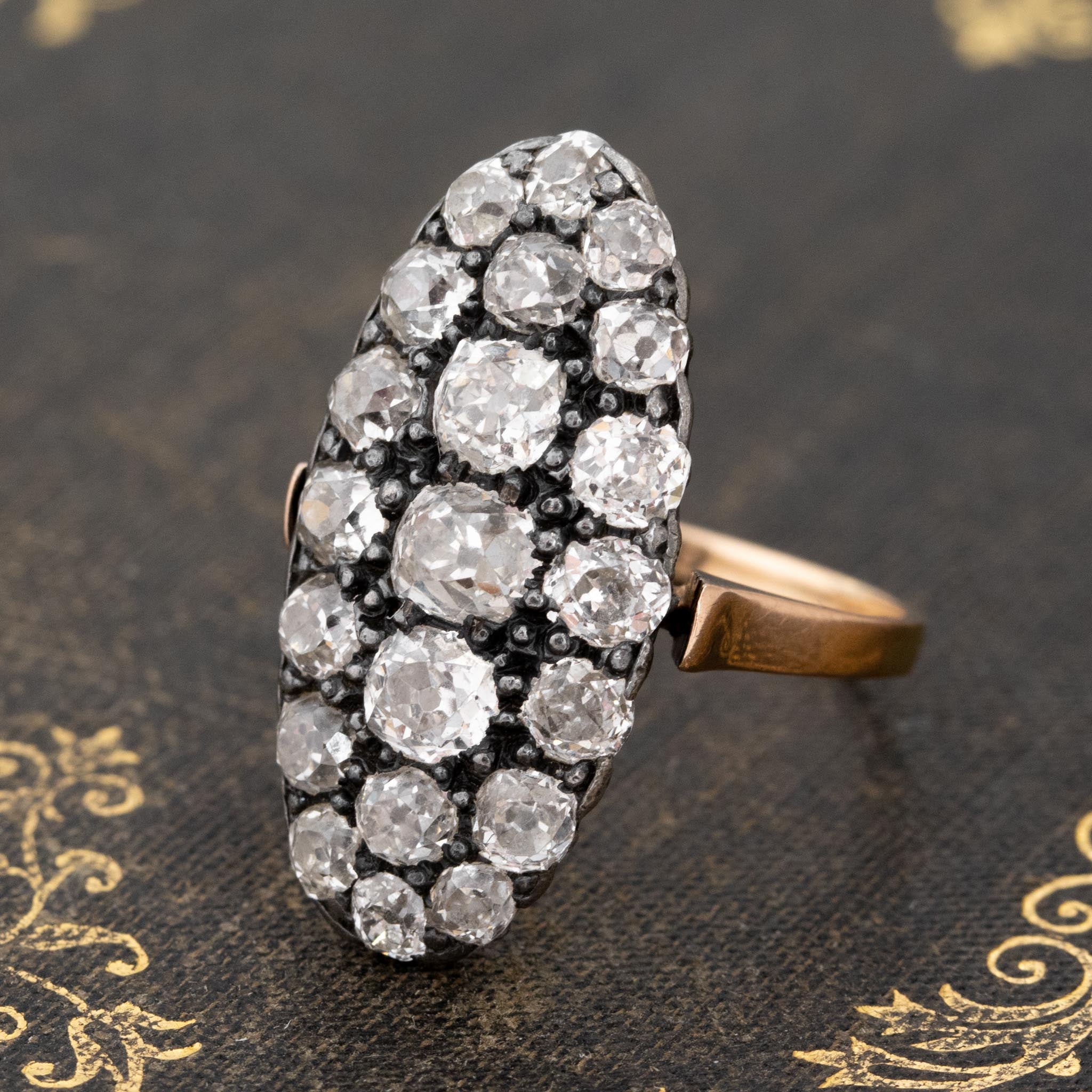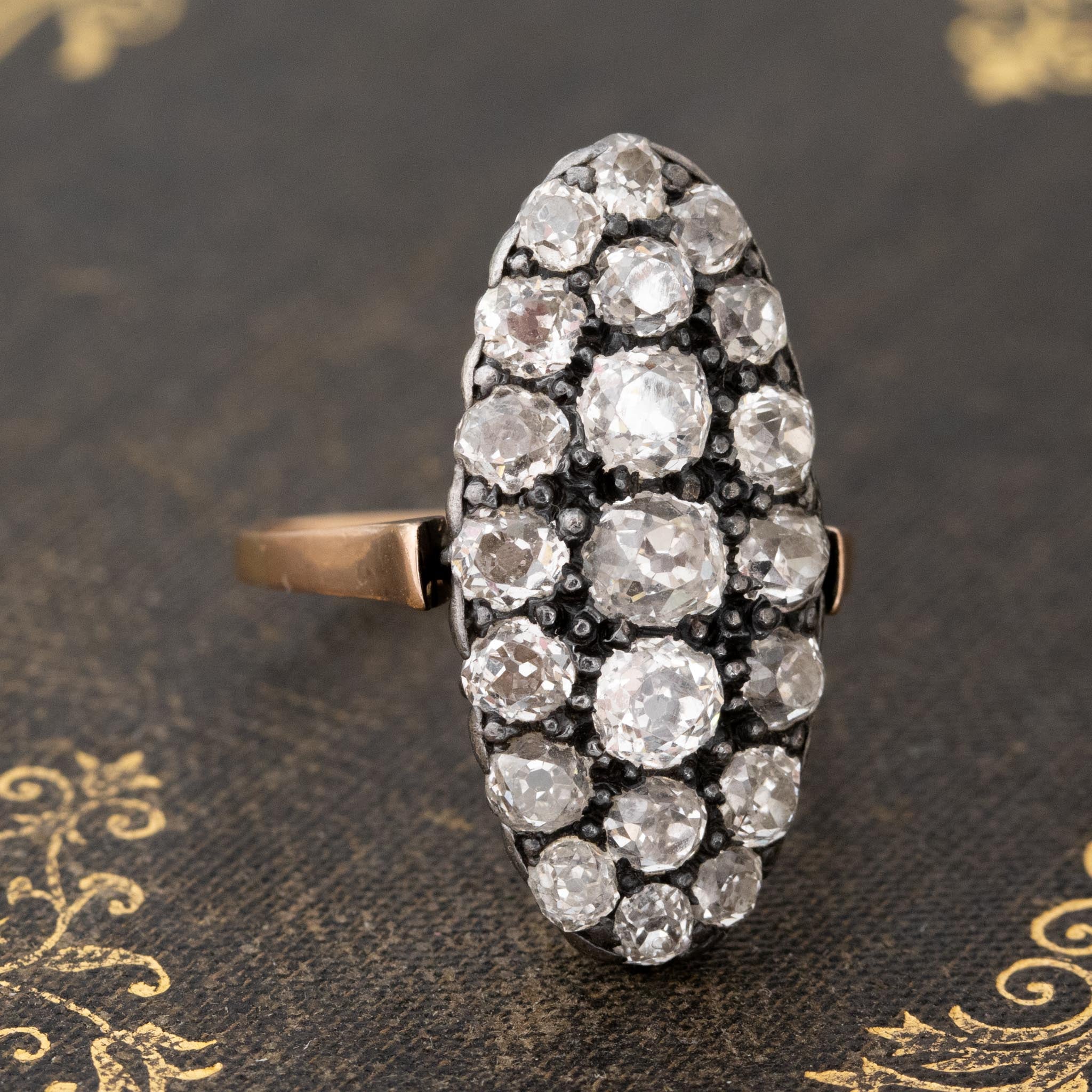 2.80ctw Antique Old Mine Diamond Navette Ring