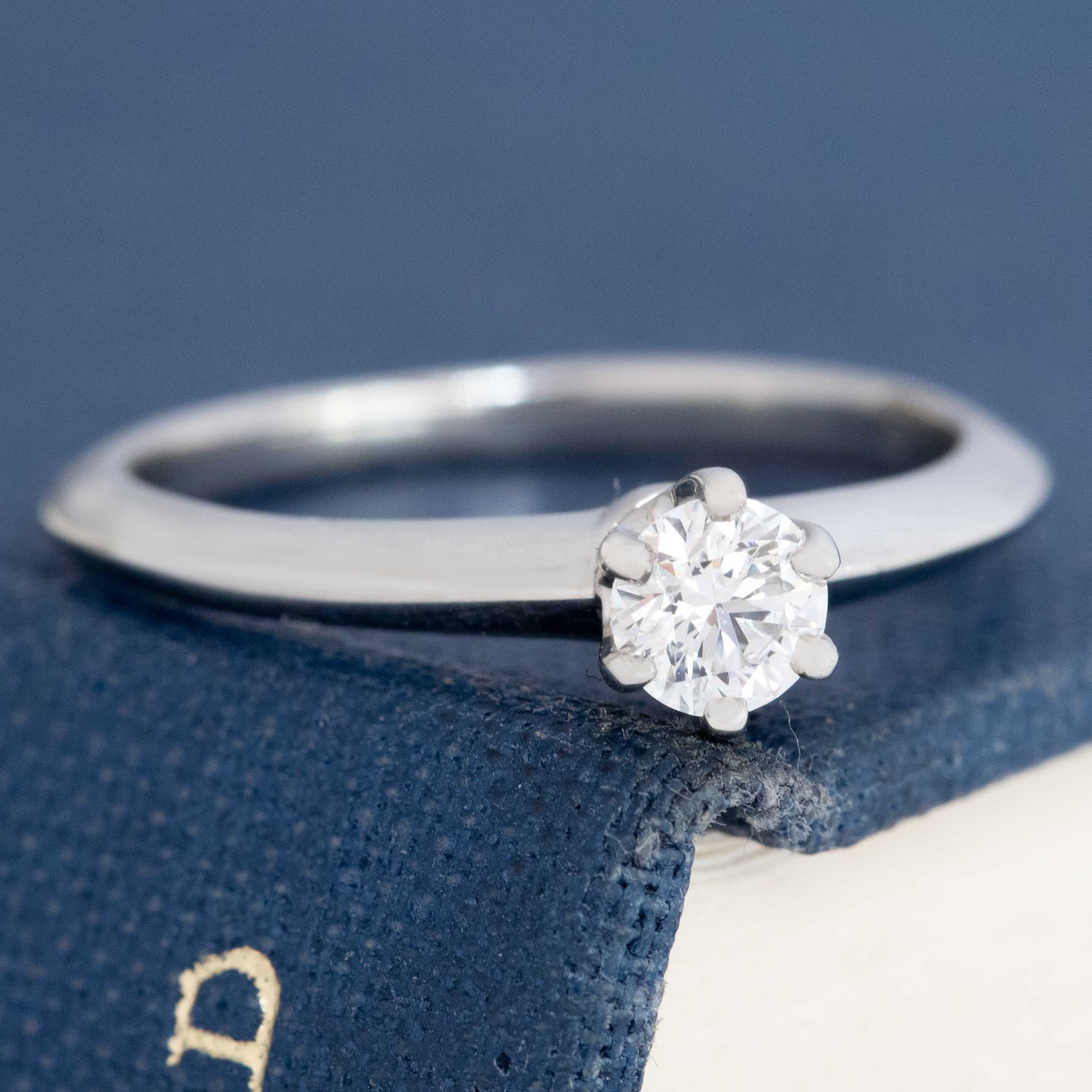 The ring setting that started it all - the classic and timeless Tiffany 6-prong solitaire! Set with a .20ct round brilliant diamond. A timeless engagement ring from none other than Tiffany & Co.