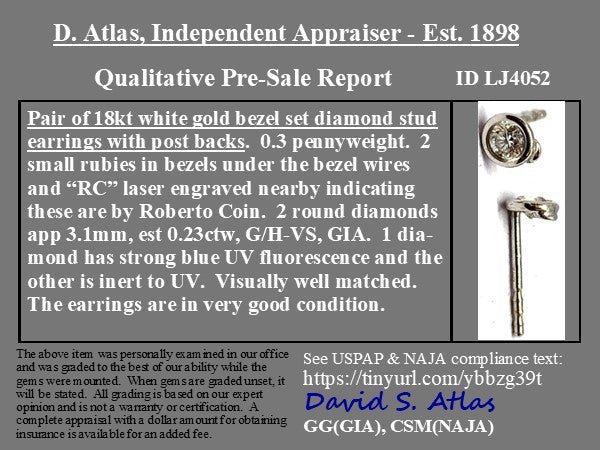 Simple and sweet diamond bezel stud earrings from Roberto Coin! They've got a great presence on the lobes (thanks to those bezels) and would be perfect for a second or third piercing! Perfect as a graduation gift, or a first fine jewelry purchase for a young collector.