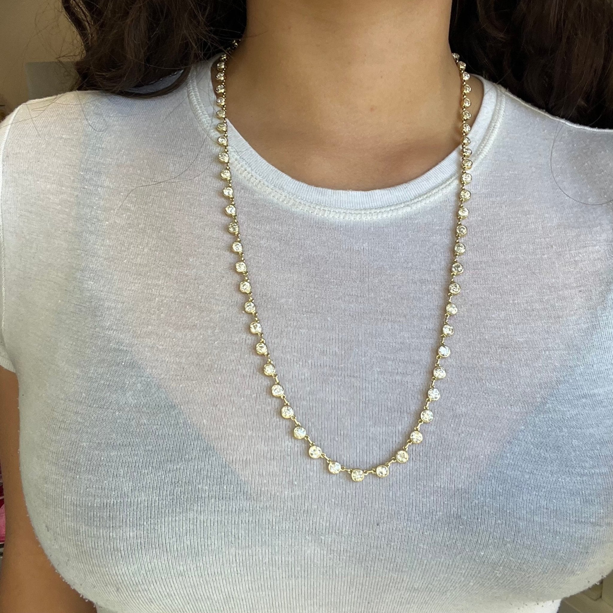 25.81ctw Old European Cut Diamond Riviere Station Necklace