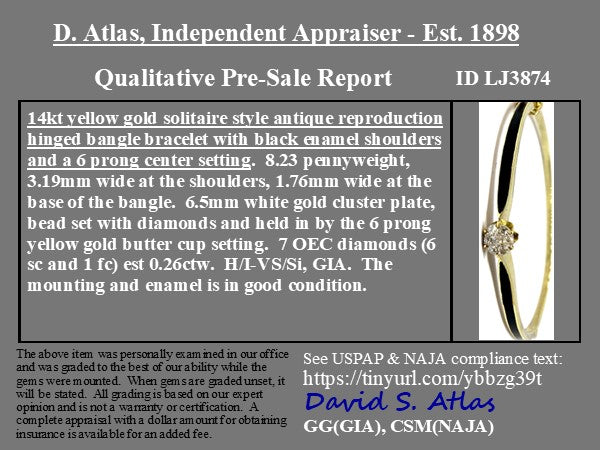 The sweetest antique-inspired bangle with delicious black enamel and a cluster of sweet Old European cut diamonds! She is perfectly elegant and easy, giving both big sparkle and a chic neutral color moment from the enamel.