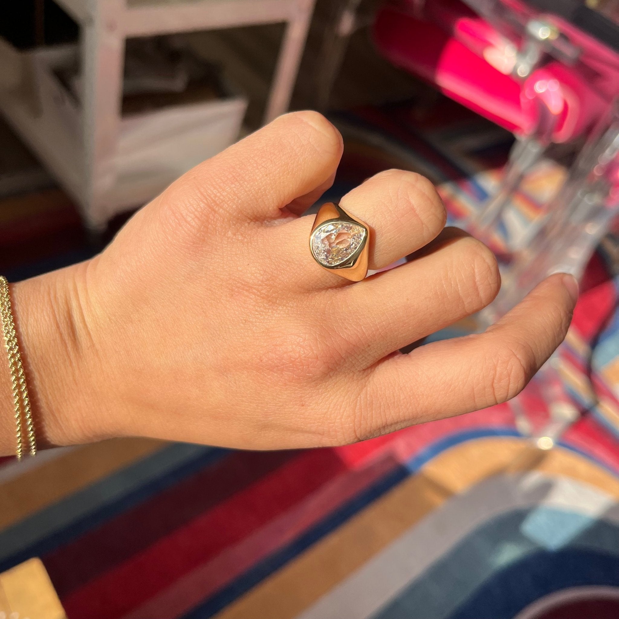 3.00ct Pear Cut Diamond Bezel Solitaire