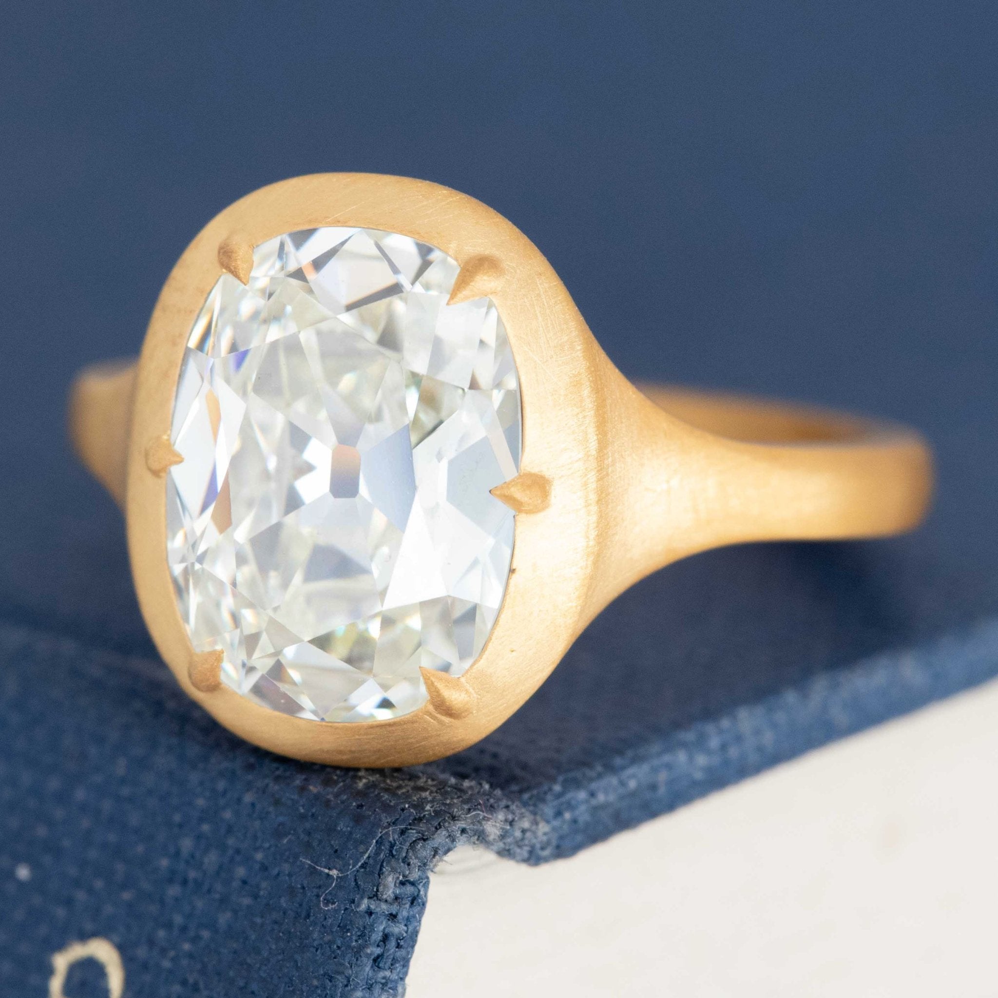 3.02ct Elongated Old Mine Cut Diamond Solitaire