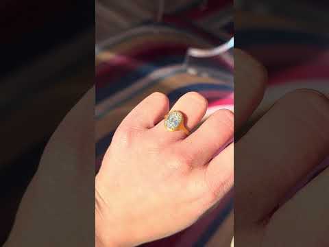 A current personal fave! We took this incredibly beautiful old mine cut and ser her in gleaming high karat yellow gold and the result is a ring that is has that old soul feel to her. The diamond has that much sought after elongated shape, looks like a 4 ct too - with its chunky facets and super super white face up. Low profile on the finger, she is elegant and chic.