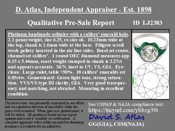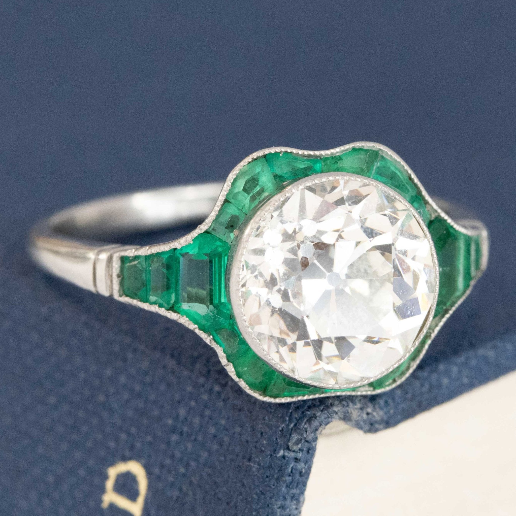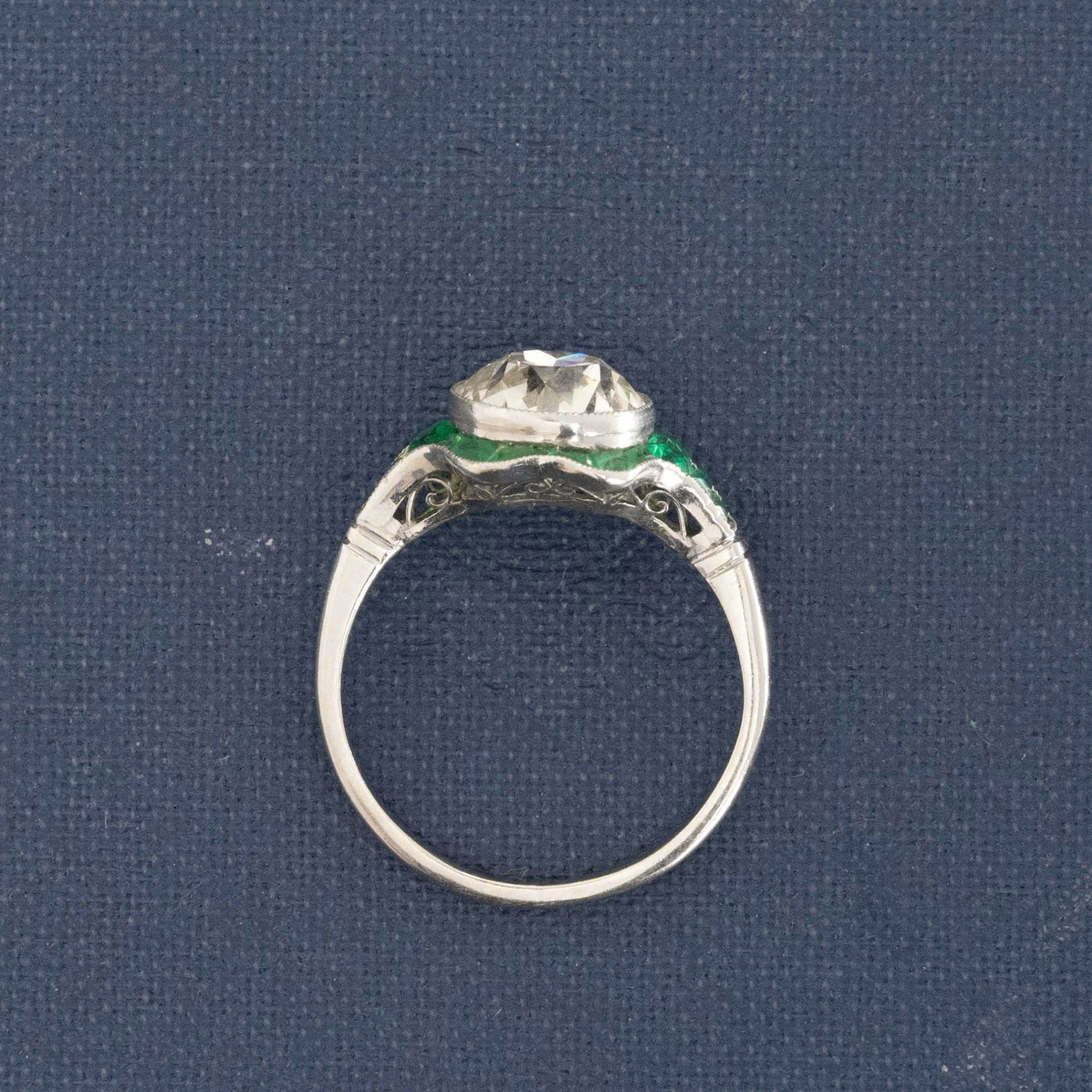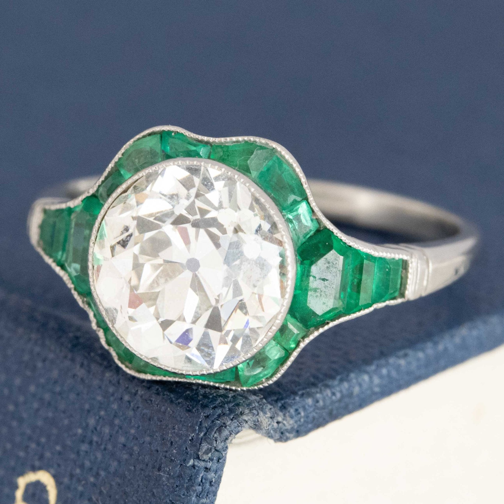 3.12ctw Deco Inspired Old European Cut Diamond & Emerald Target Ring