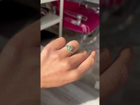 This platinum, handmade solitaire sits beautifully on the finger, and serves up all the charm you’d expect from something of the times. This Deco-inspired beauty offers one of our favorite gemmy constrasts, emeralds and diamonds, in such an elegant and unique way. The stone has a much brighter face-up than her graded color, and those emeralds that surround her offer such a lovely hue of green.