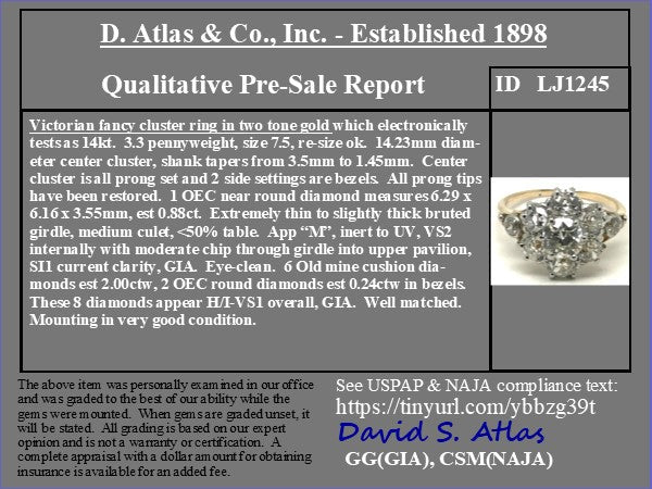 3.12ctw Victorian Diamond Cluster Ring