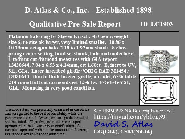 3.14ctw Radiant Cut Diamond Halo Solitaire by Kirsch