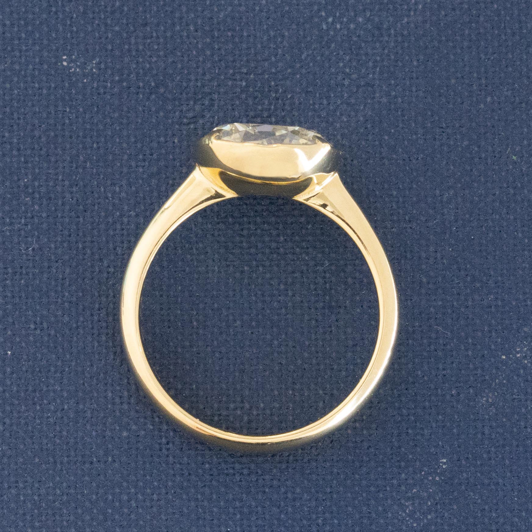 A delicious and spready antique old mine cut diamond, with rustic facets and oozing charm. Bright and happy, this antique baby has a warm glow to it which sparkles beautifully in any lighting condition. We love how she spans across one's finger - and isn't that open culet just to die for?
