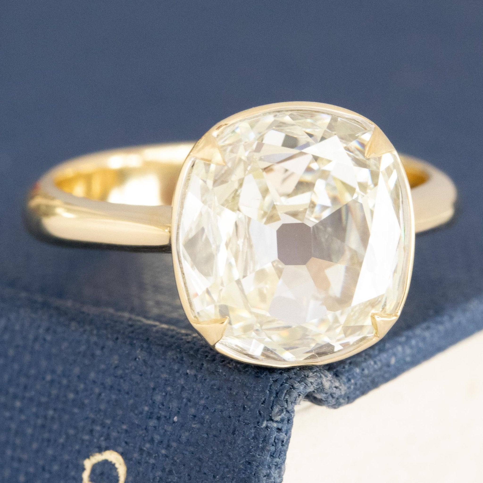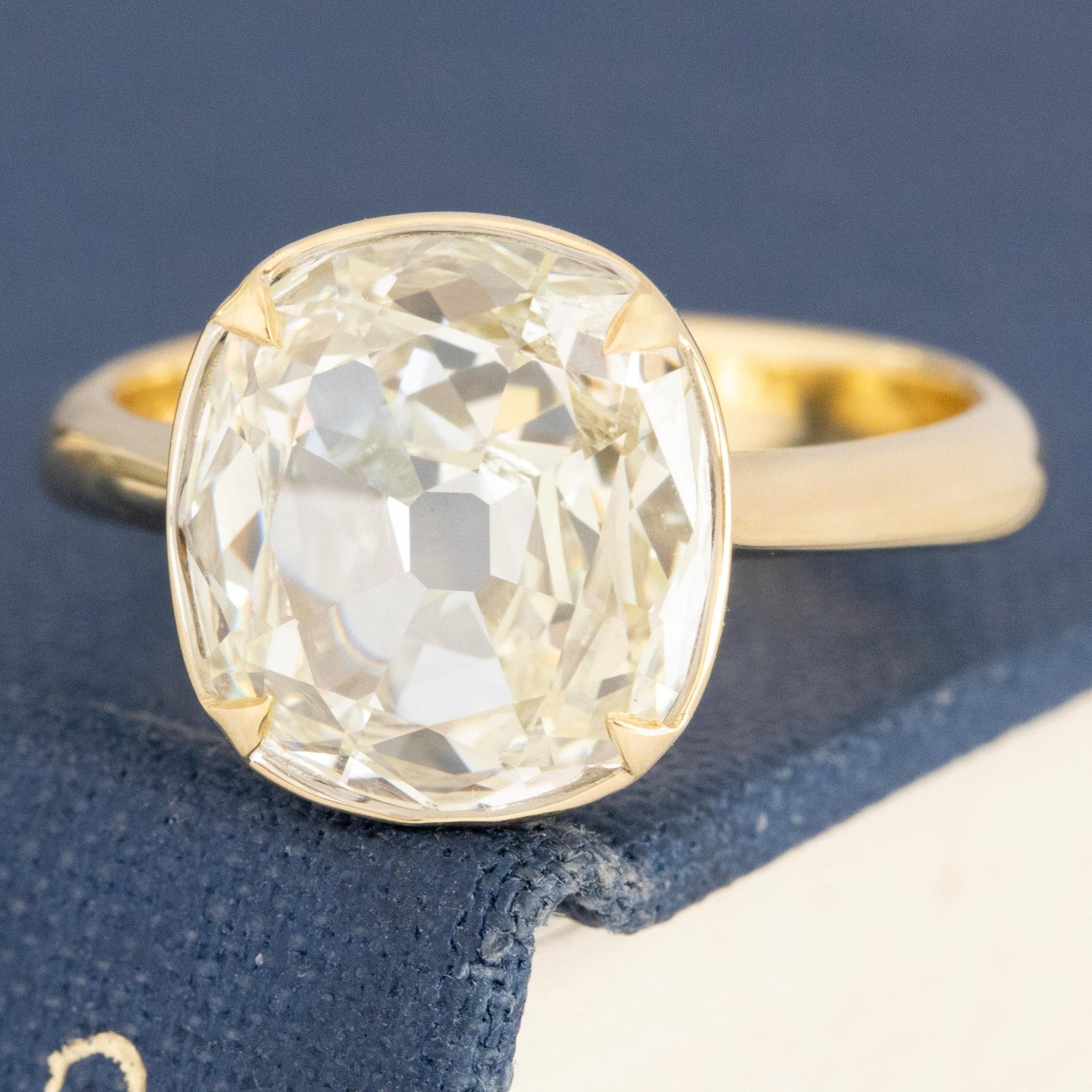 3.16ct Old Mine Cushion Cut Diamond Solitaire