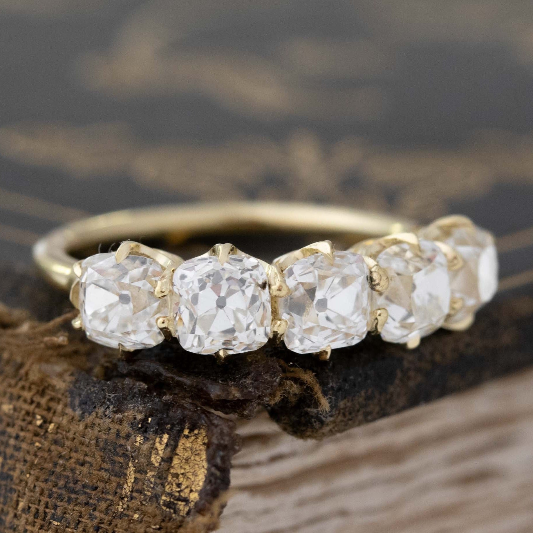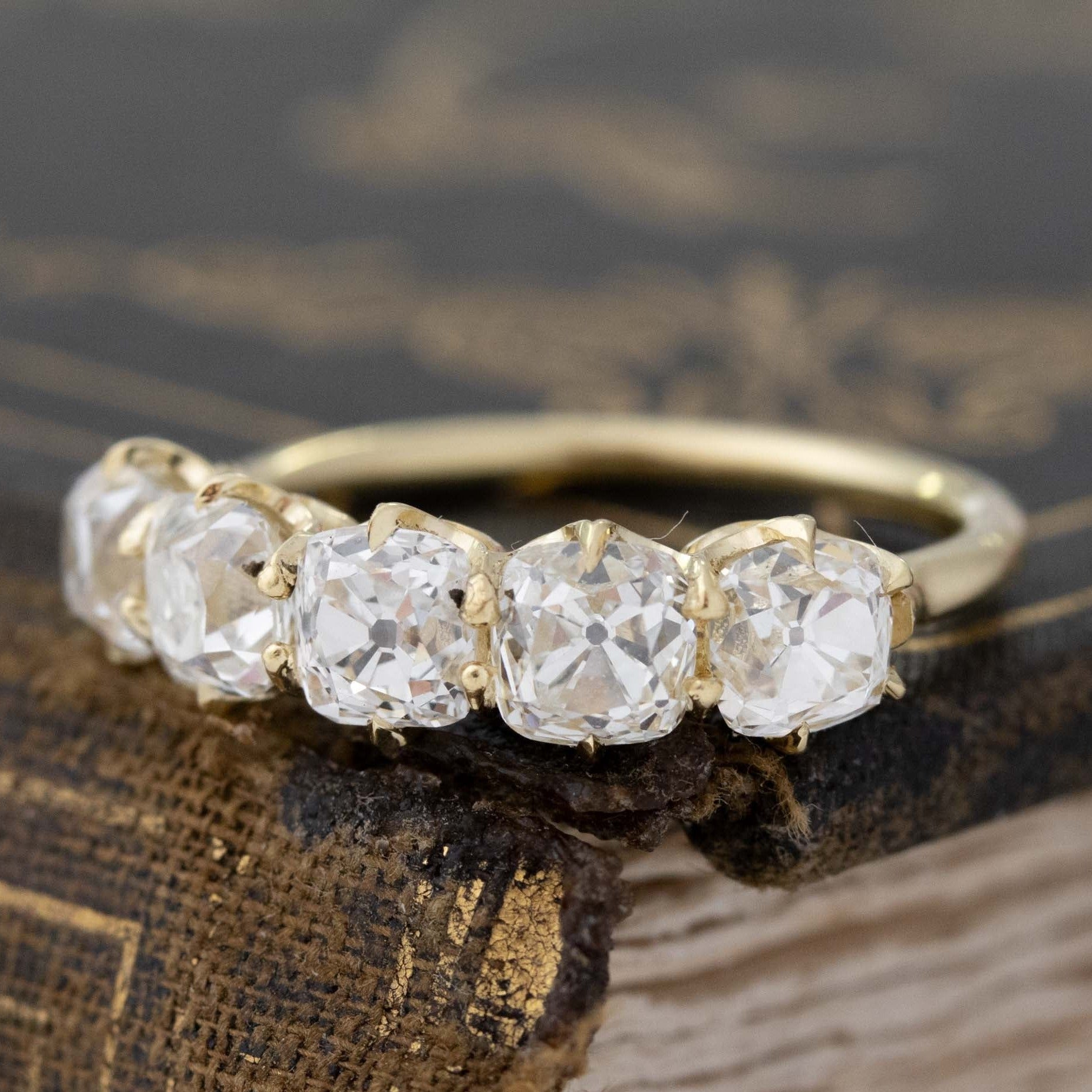 3.16ctw Old Mine Cut Diamond 5-Stone Band