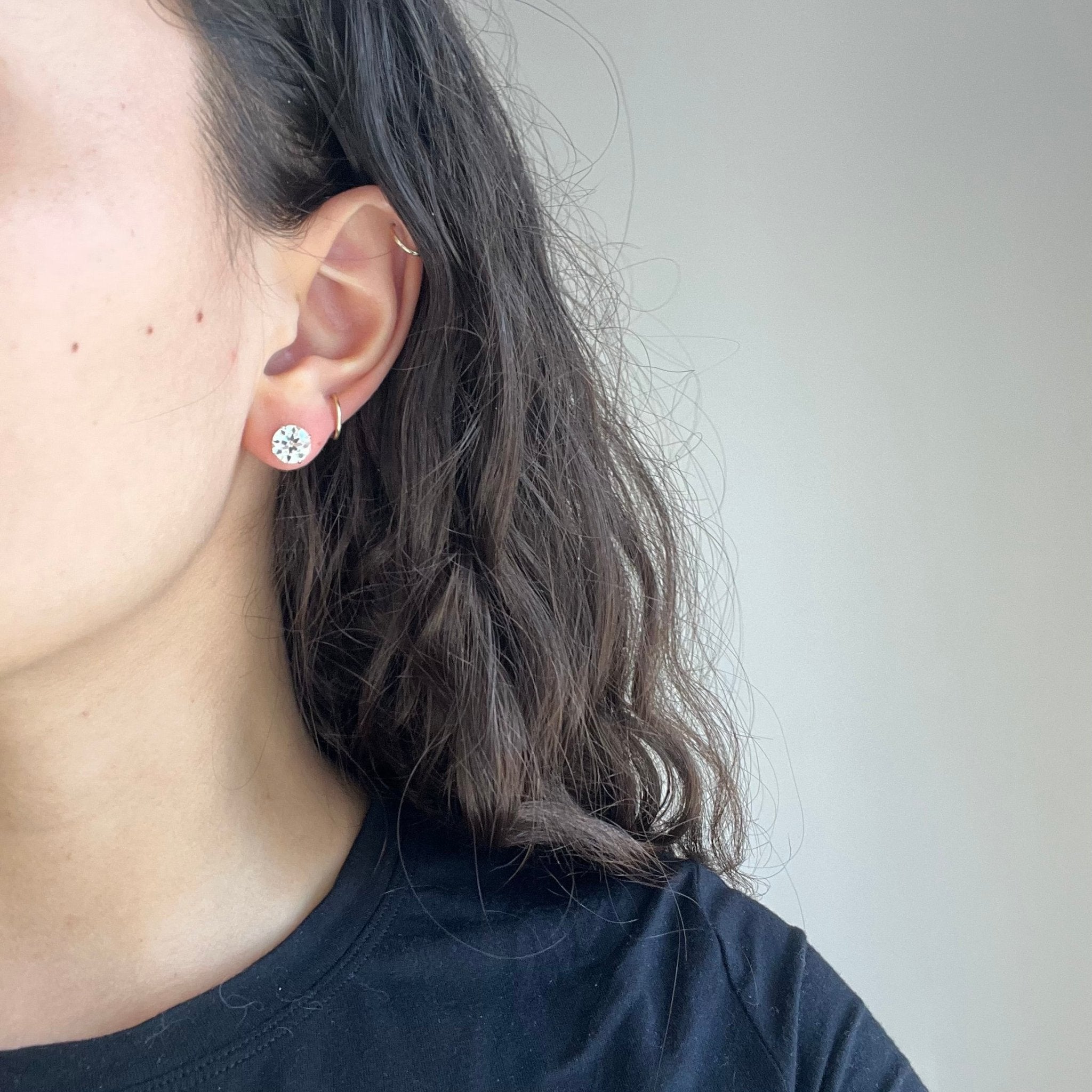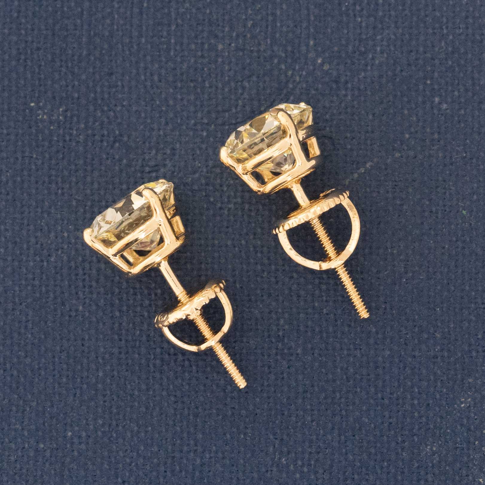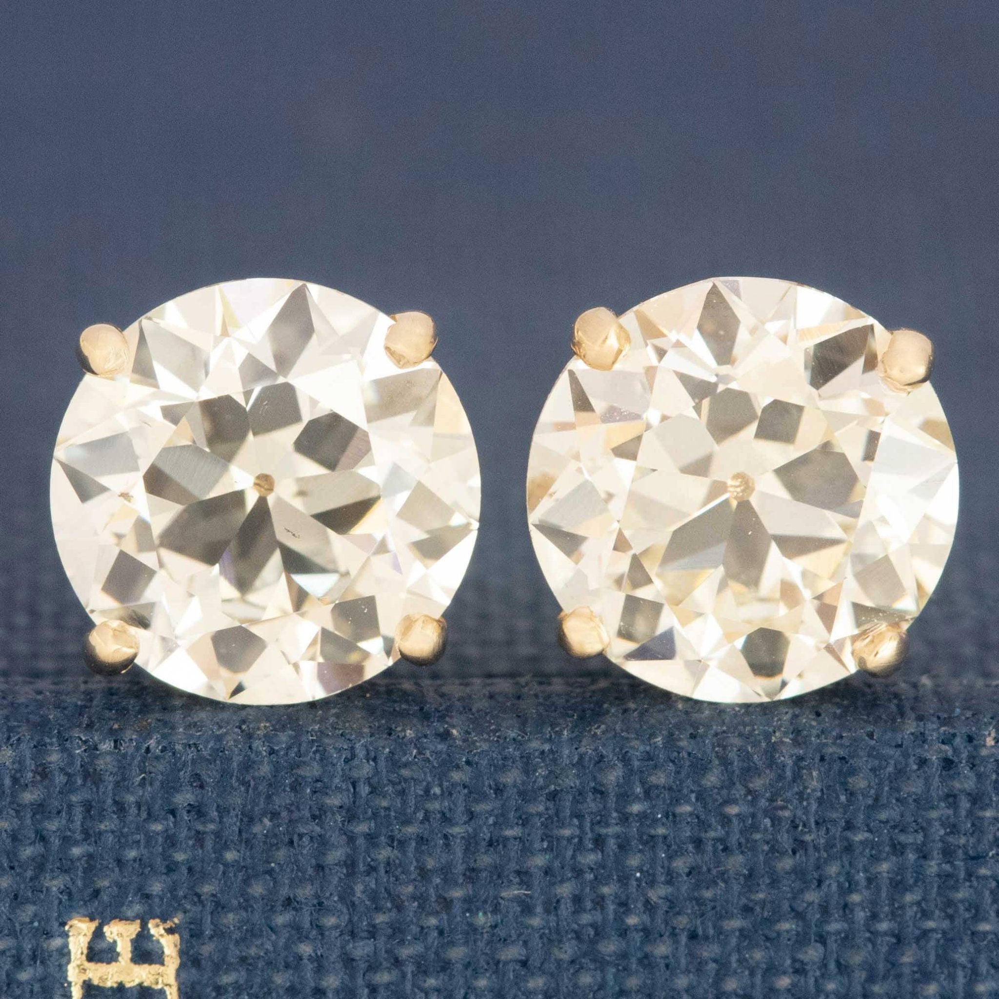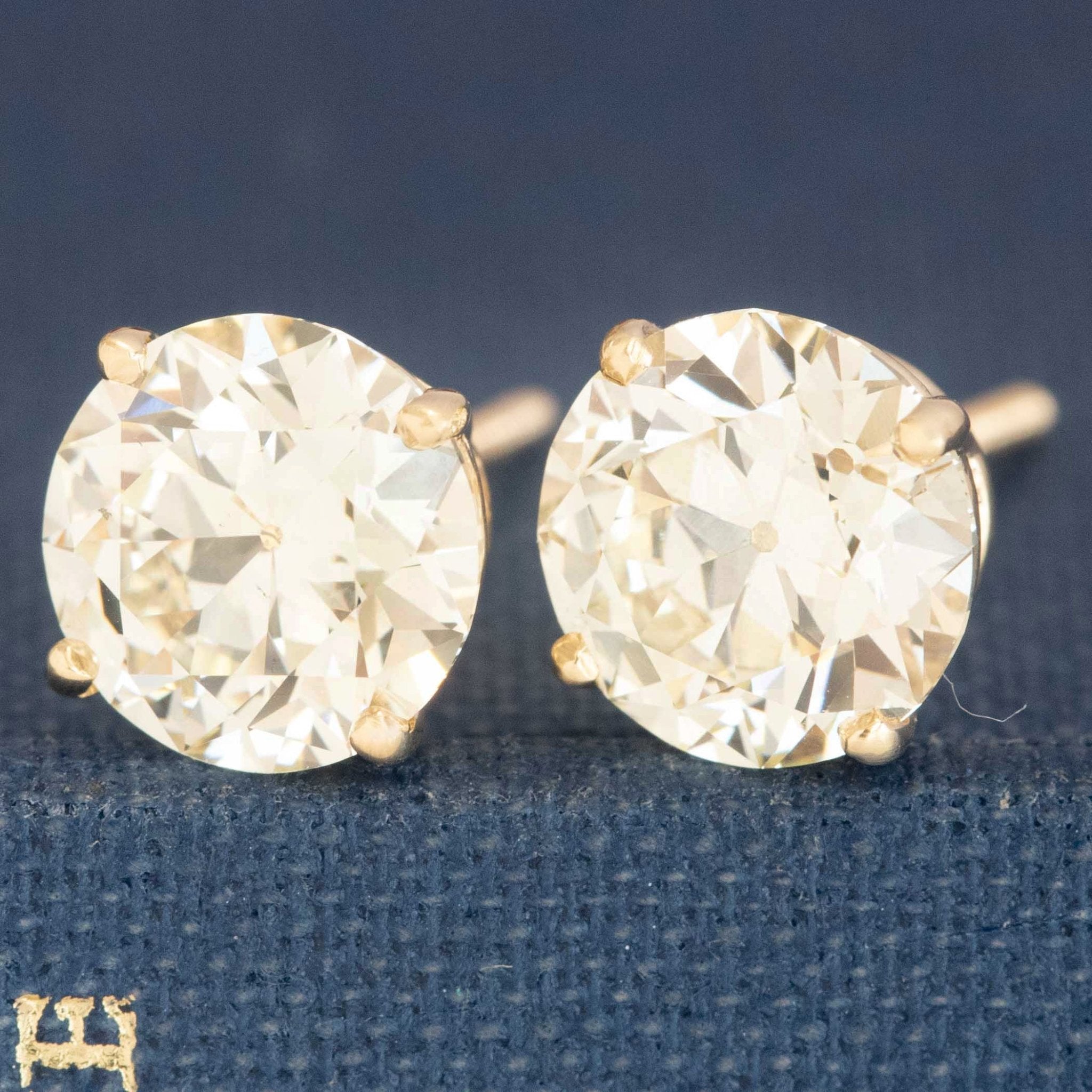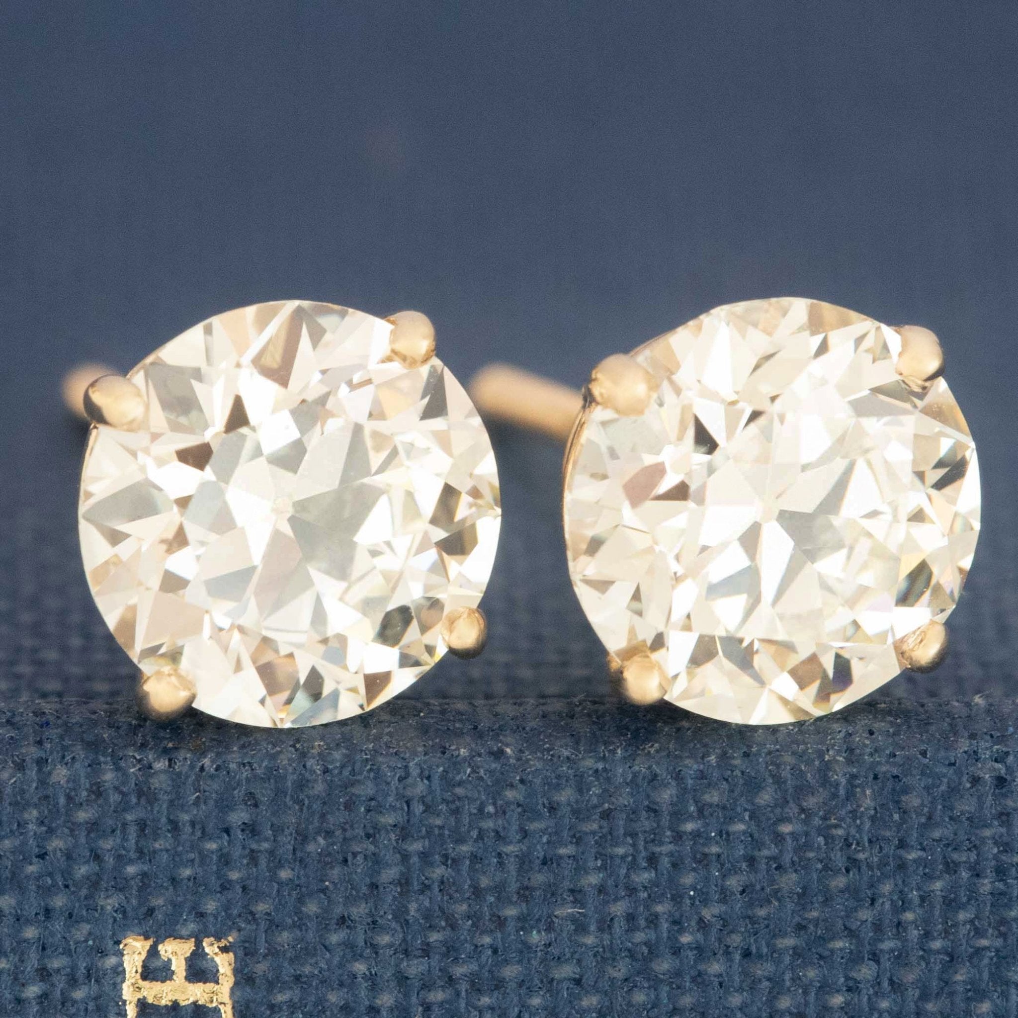 Always and forever a classic - diamonds set in 4-prong basket settings! The diamonds are chunky OECs with the prettiest warmer tones - they are bright and lively and sparkle like mad on the lobes.