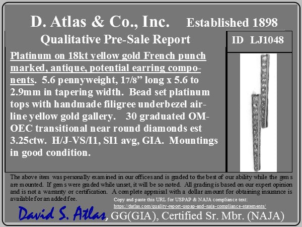 3.25ctw Antique Diamond Drop Charms, French