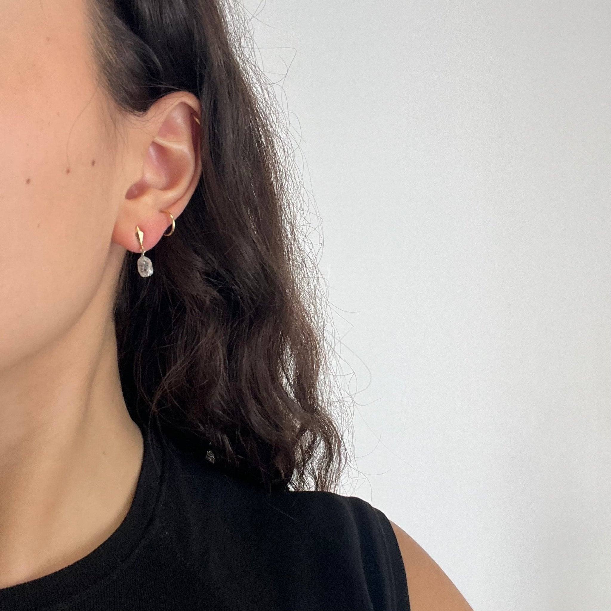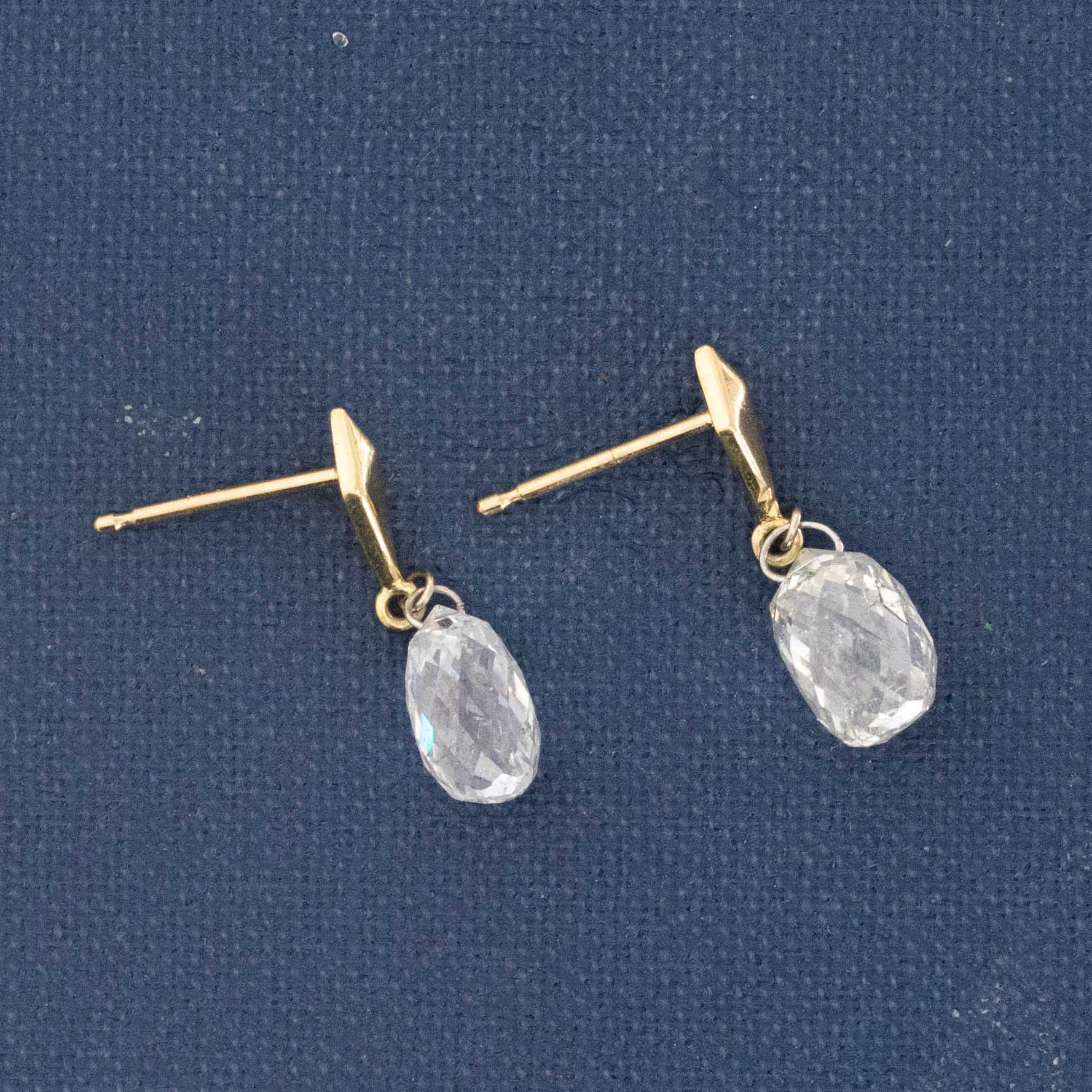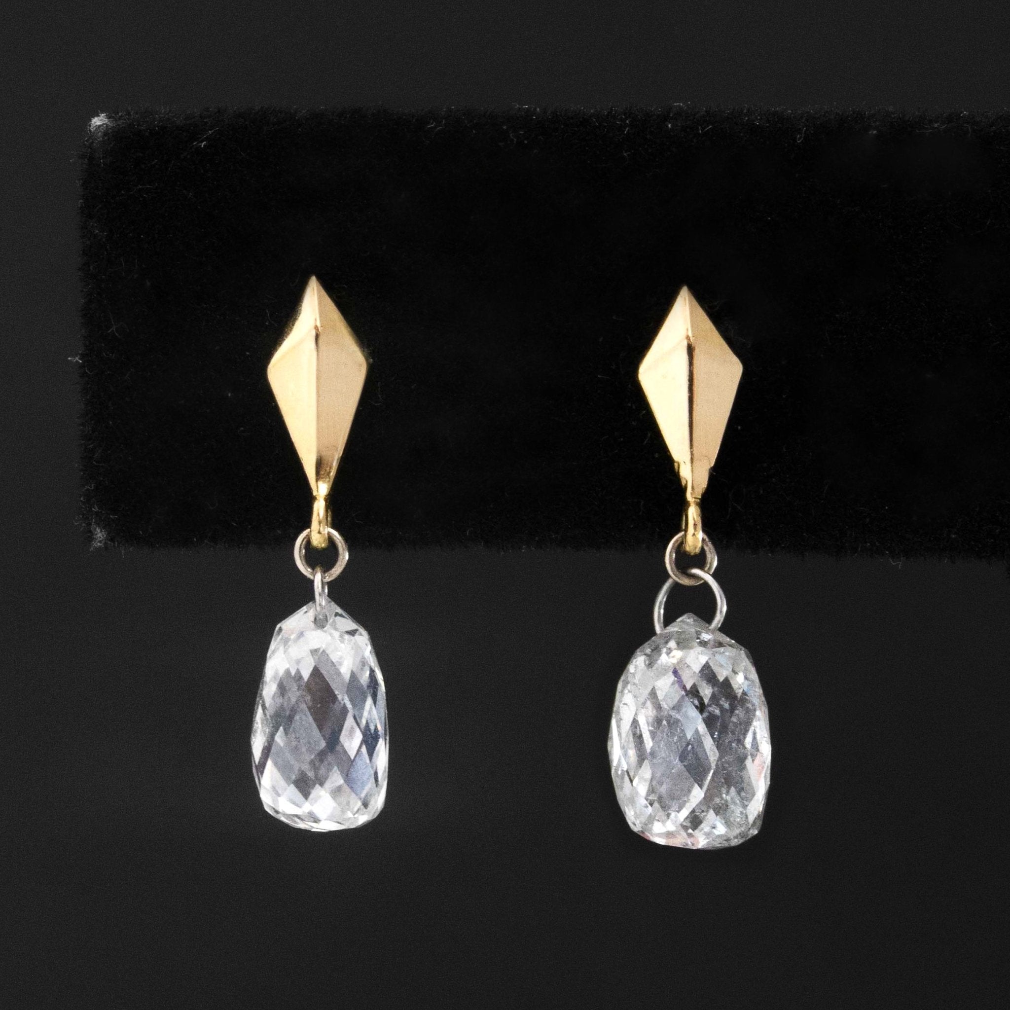 Vintage briolette cut diamonds, re-set onto simple gold studs to give you vintage diamond charm in a delicate and charming manner. The briolettes dance and twinkle like little kaleidoscopes with each movement of the face, all with the ease of a gold stud earring. Perfect for daily wear and our candidate for your new favorite earrings.