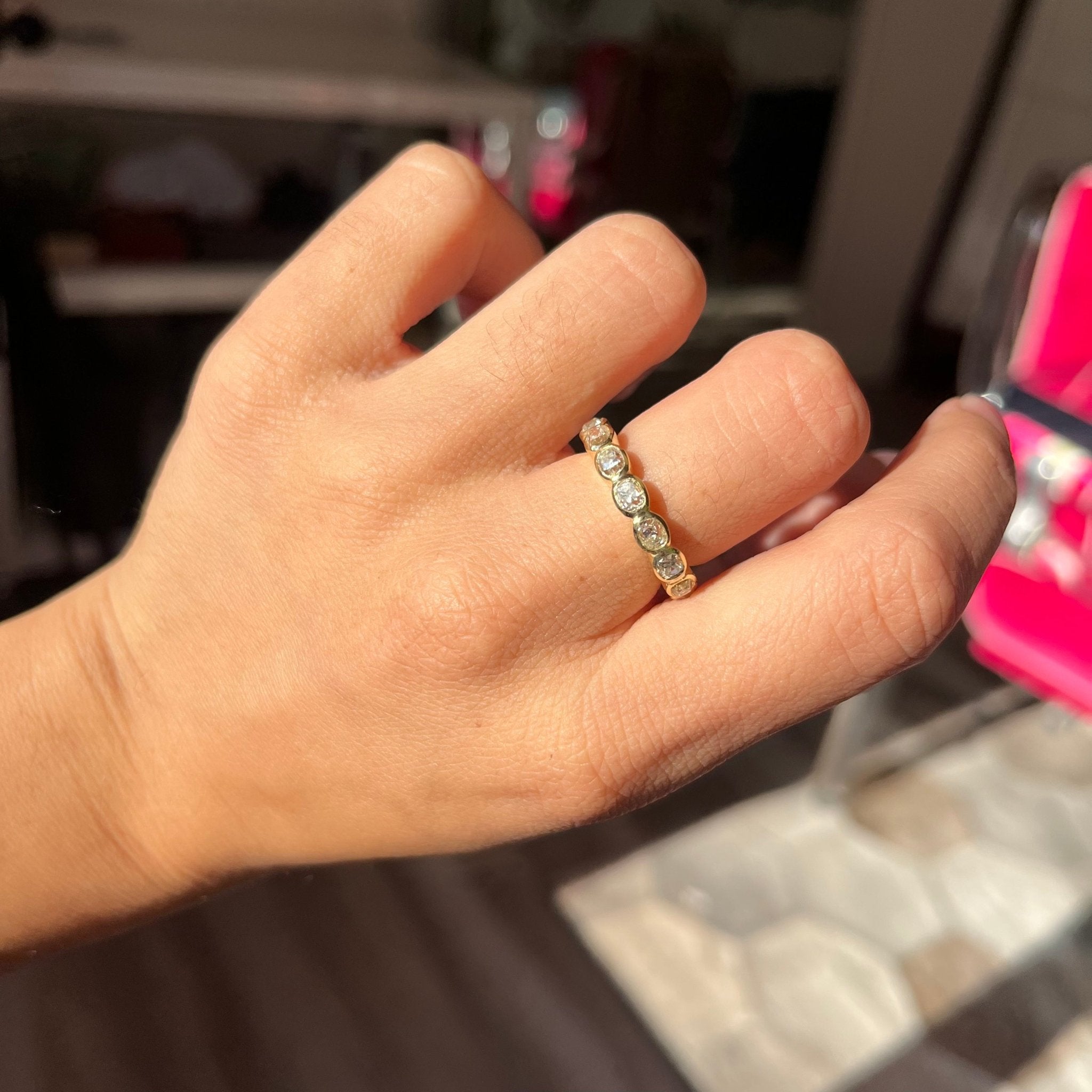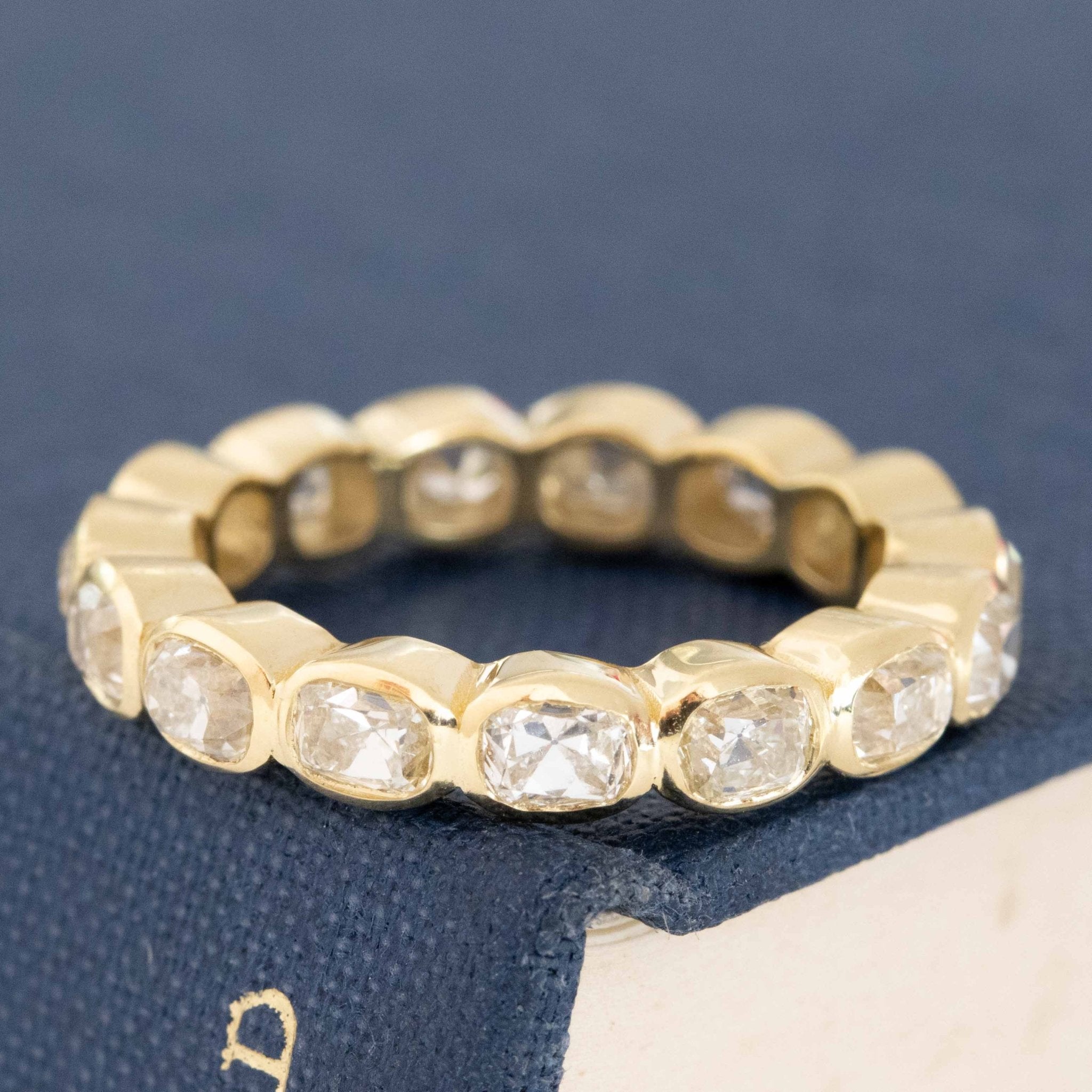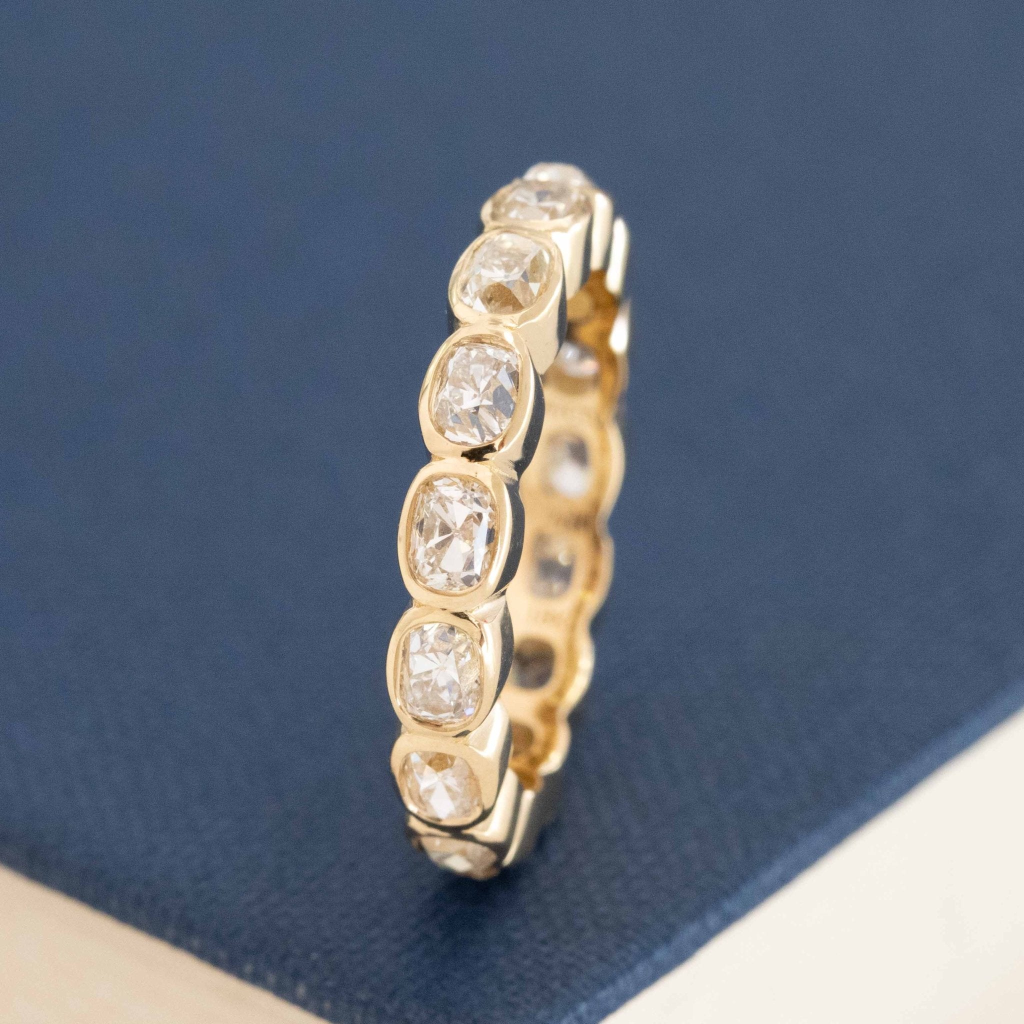 3.29ctw Elongated Old Mine Cut Diamond Bezel Eternity Band