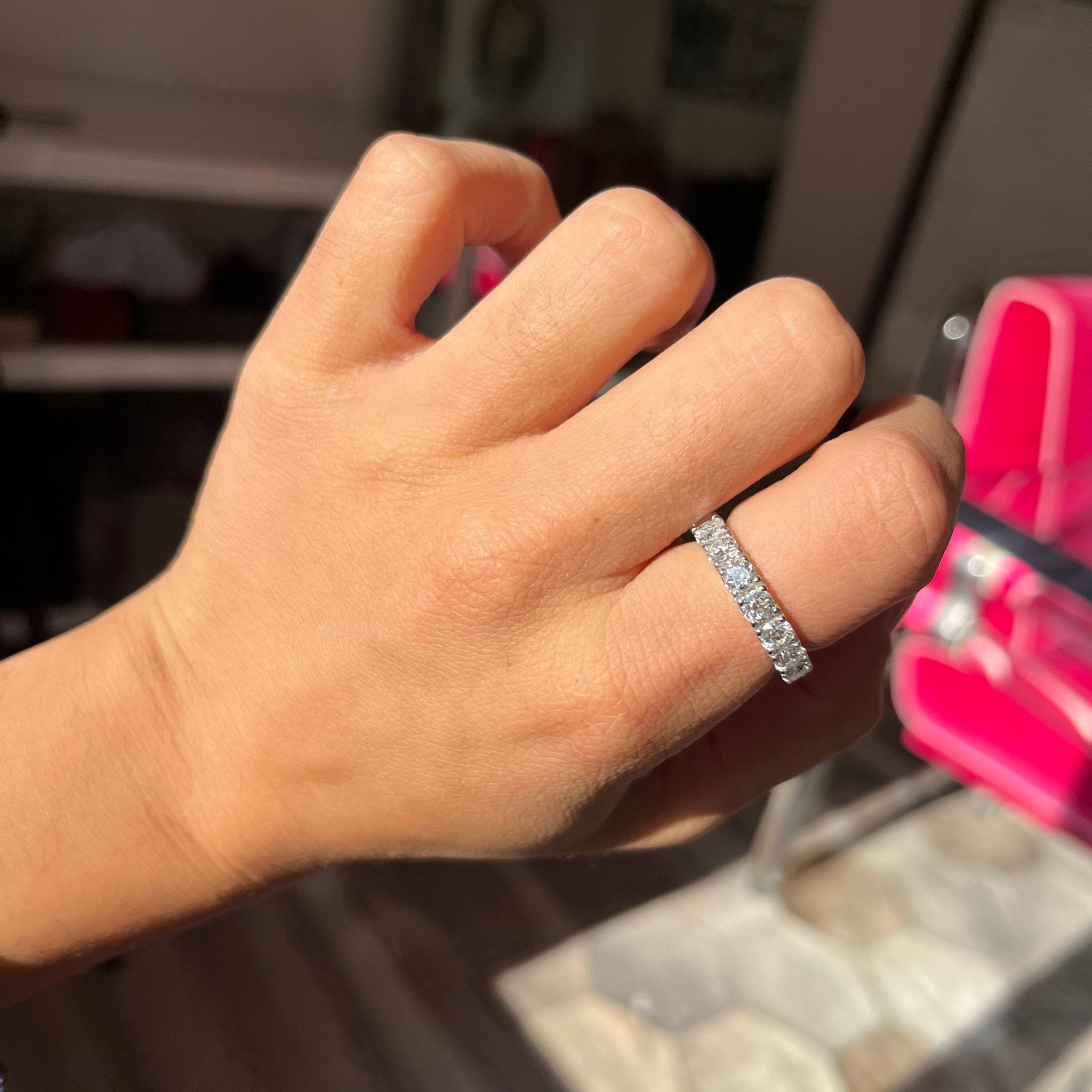 These OEC’s were harvested from antique and vintage pieces of jewelry that were no longer wearable. They’ve been matched, calibrated, and put together these classic eternity bands that glide onto the finger like butter. The diamonds are like little firecrackers, and are super prismatic in the light.