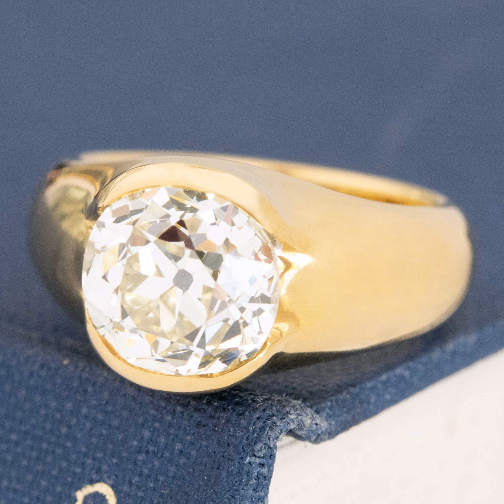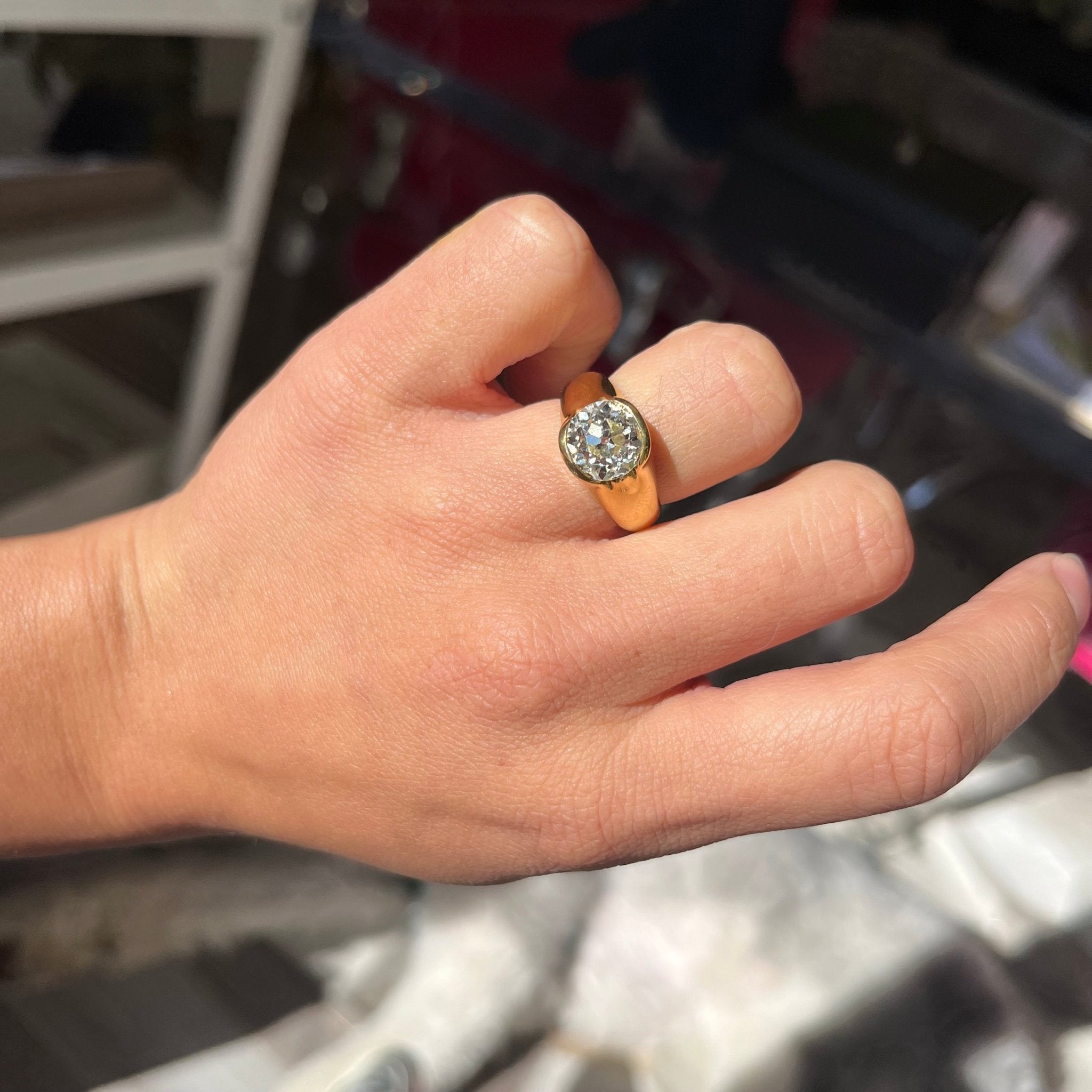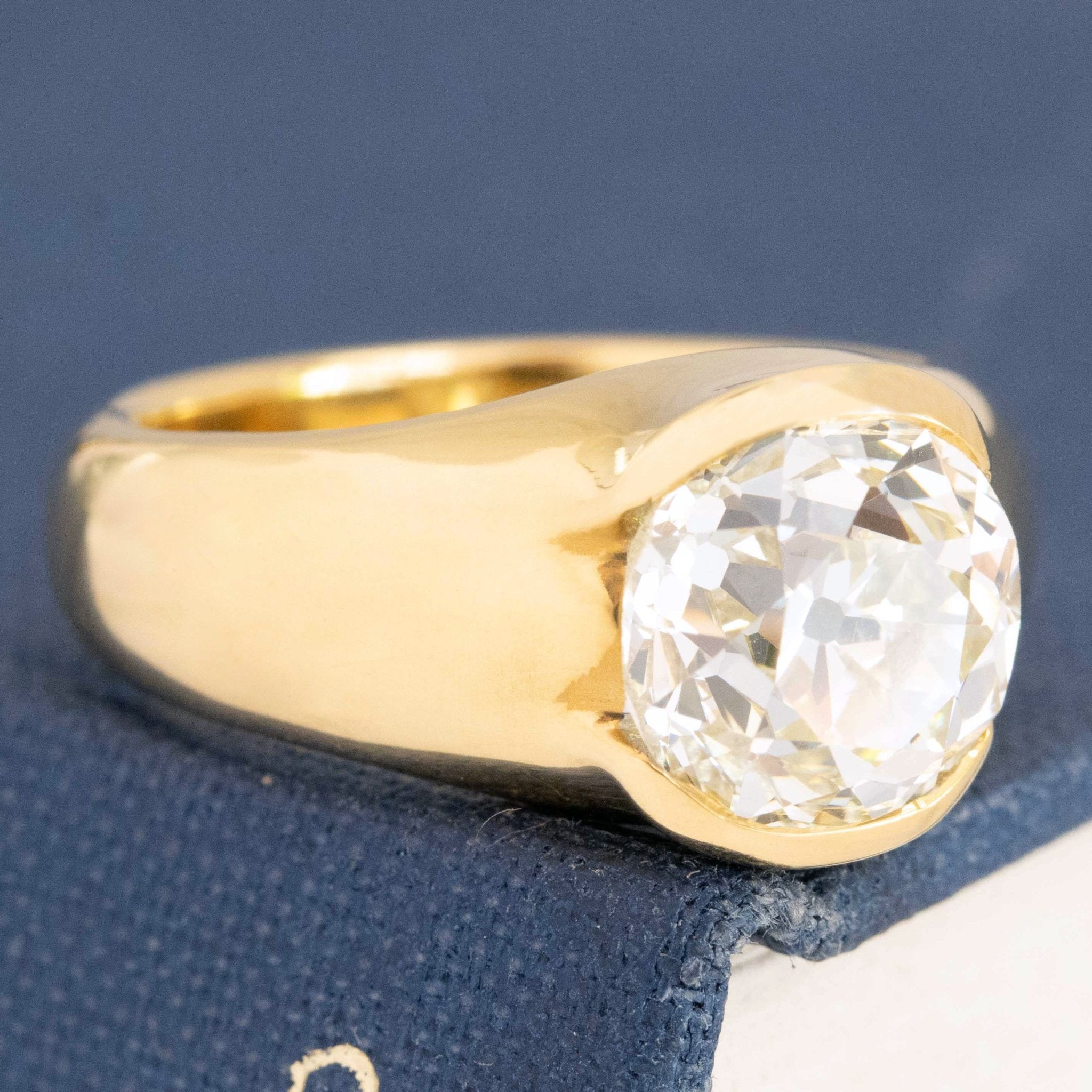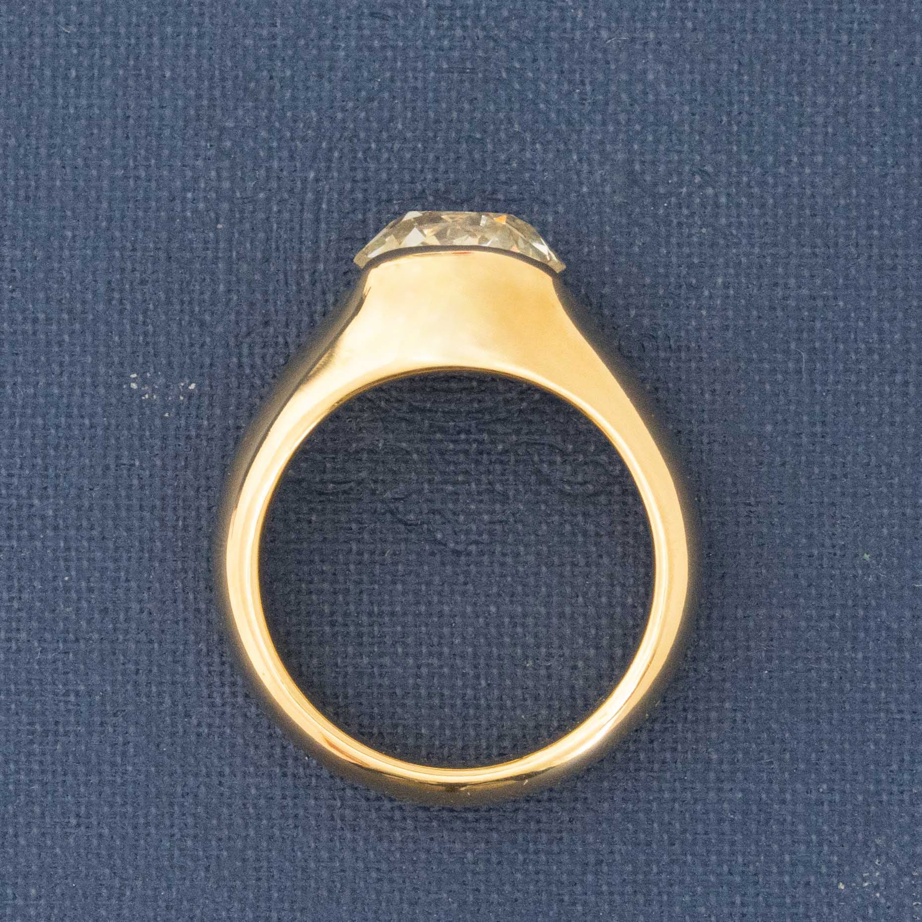 3.39ct Old Mine Cut Diamond Half-Bezel Solitaire