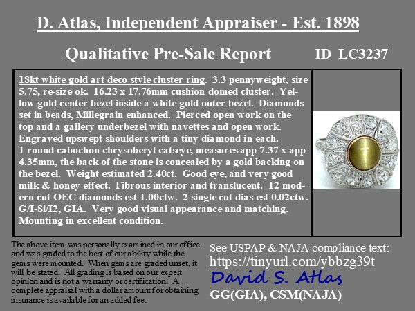 3.42ctw Chrysoberyl Catseye & Diamond Cluster Ring