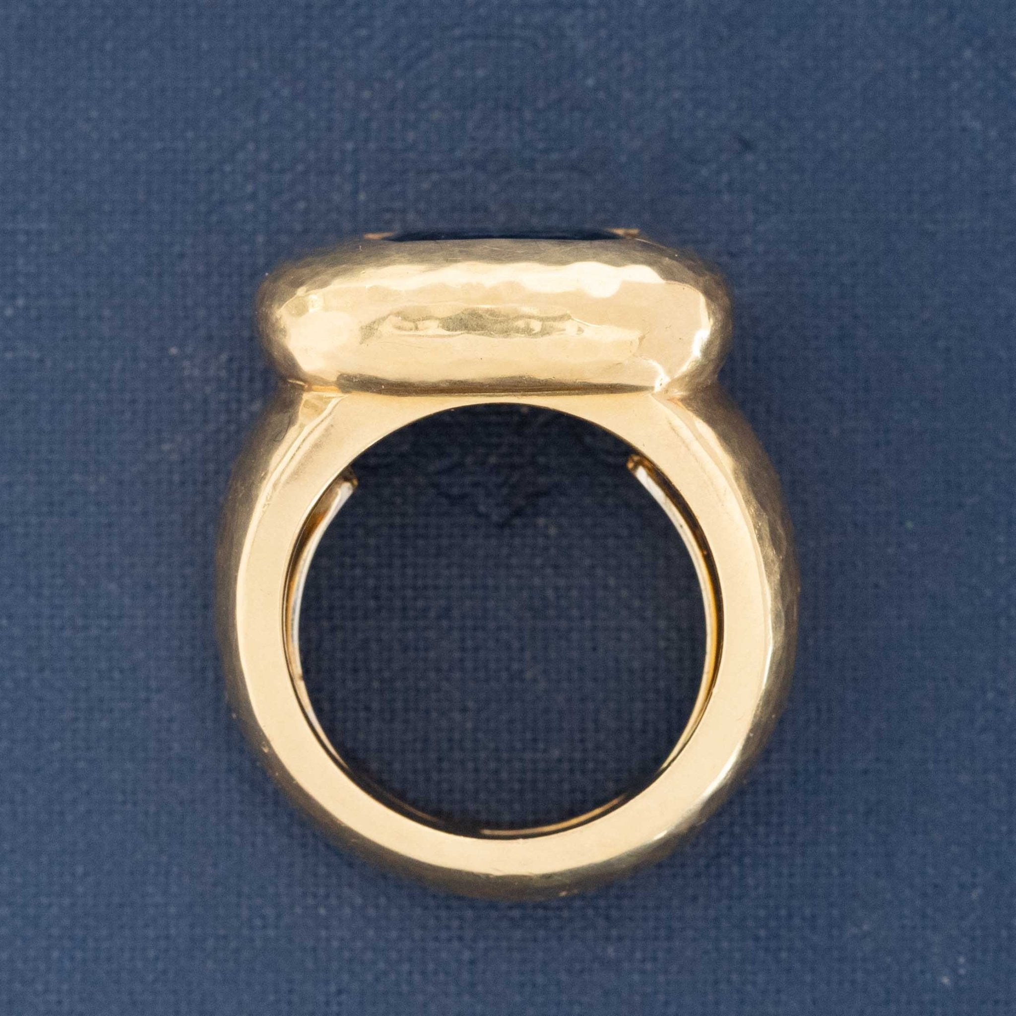 This gold and sapphire hammered ring from David Webb is THE bold and gold jewel, perfect for those with a love for sapphires! Not only is the center stone incredibly beautiful, but we love those crisp and geometric facets set in pillowy yellow gold with a smooth feel. She’s got quite the presence and looks totally badass on the hands. Feels so good on the finger! She represents the best of the 80s - what can we say?