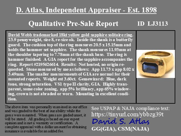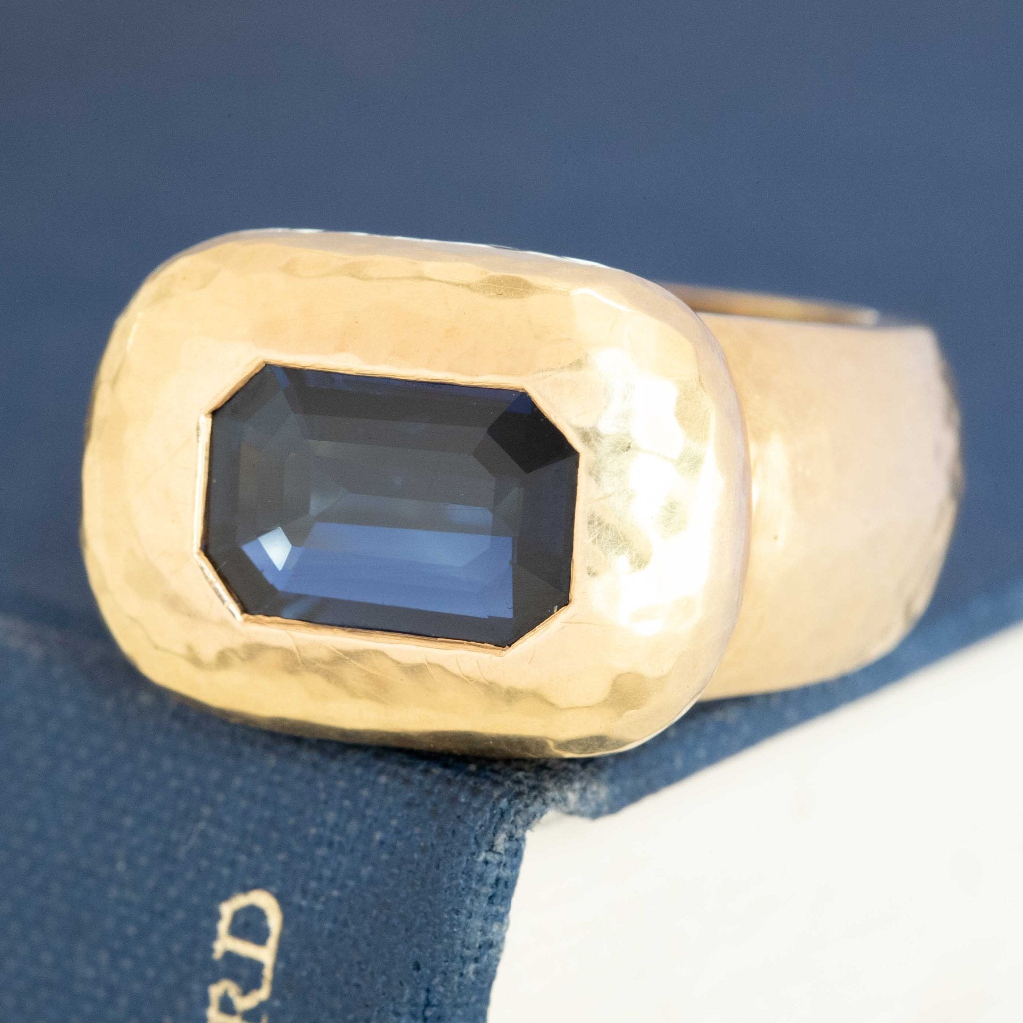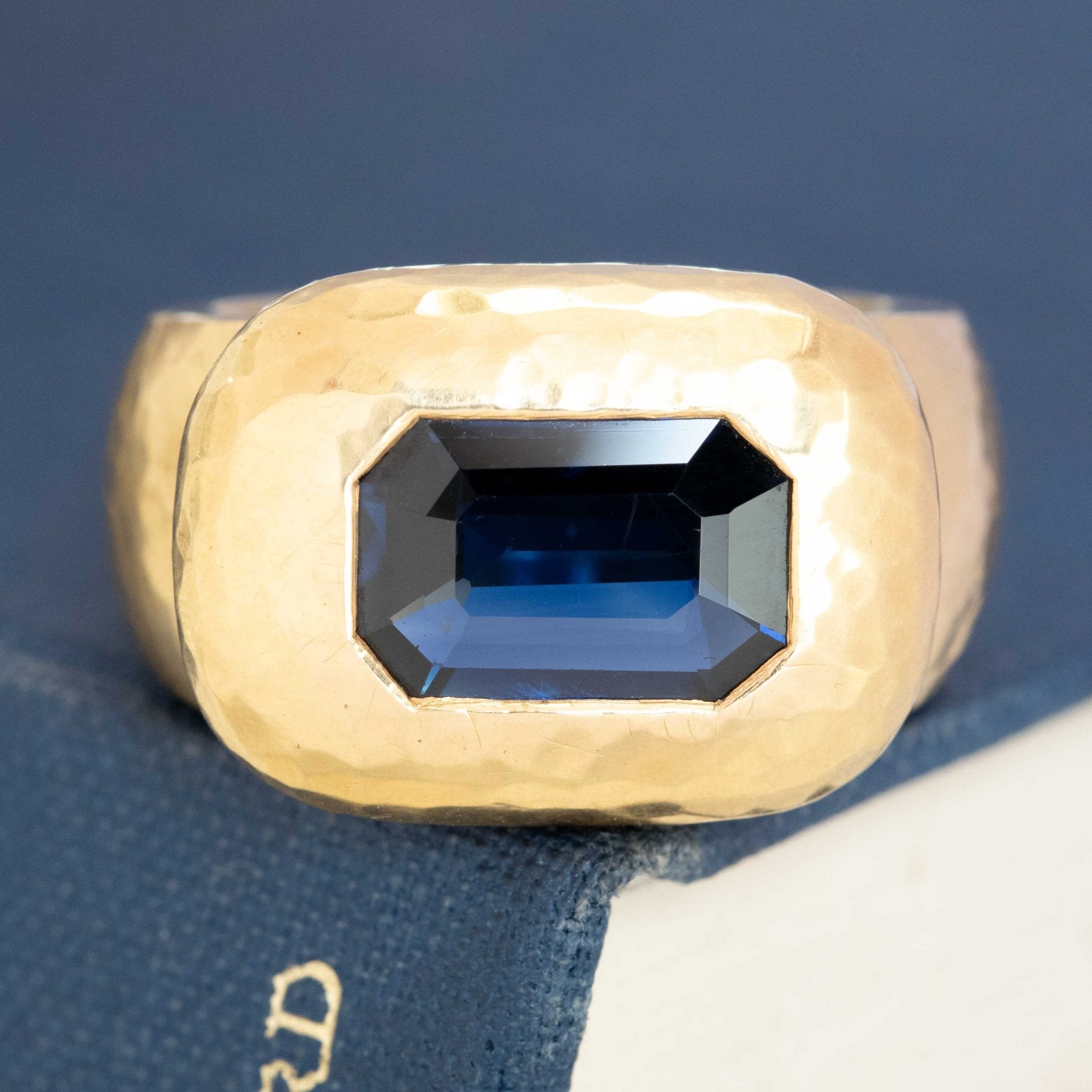 3.60ct Vintage No-Heat Sapphire Hammered Ring, by David Webb