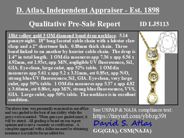 3.60ctw Vintage Old Mine Cut Diamond Bezel 3-Stone Drop Pendant, French