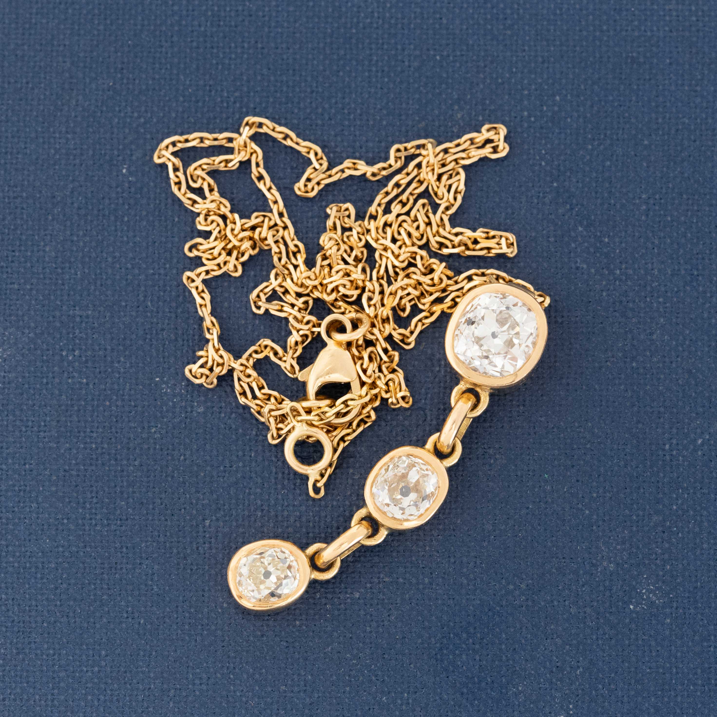 3.75ctw (est) Vintage Old Mine Cut Diamond Bezel 3-Stone Drop Pendant, French