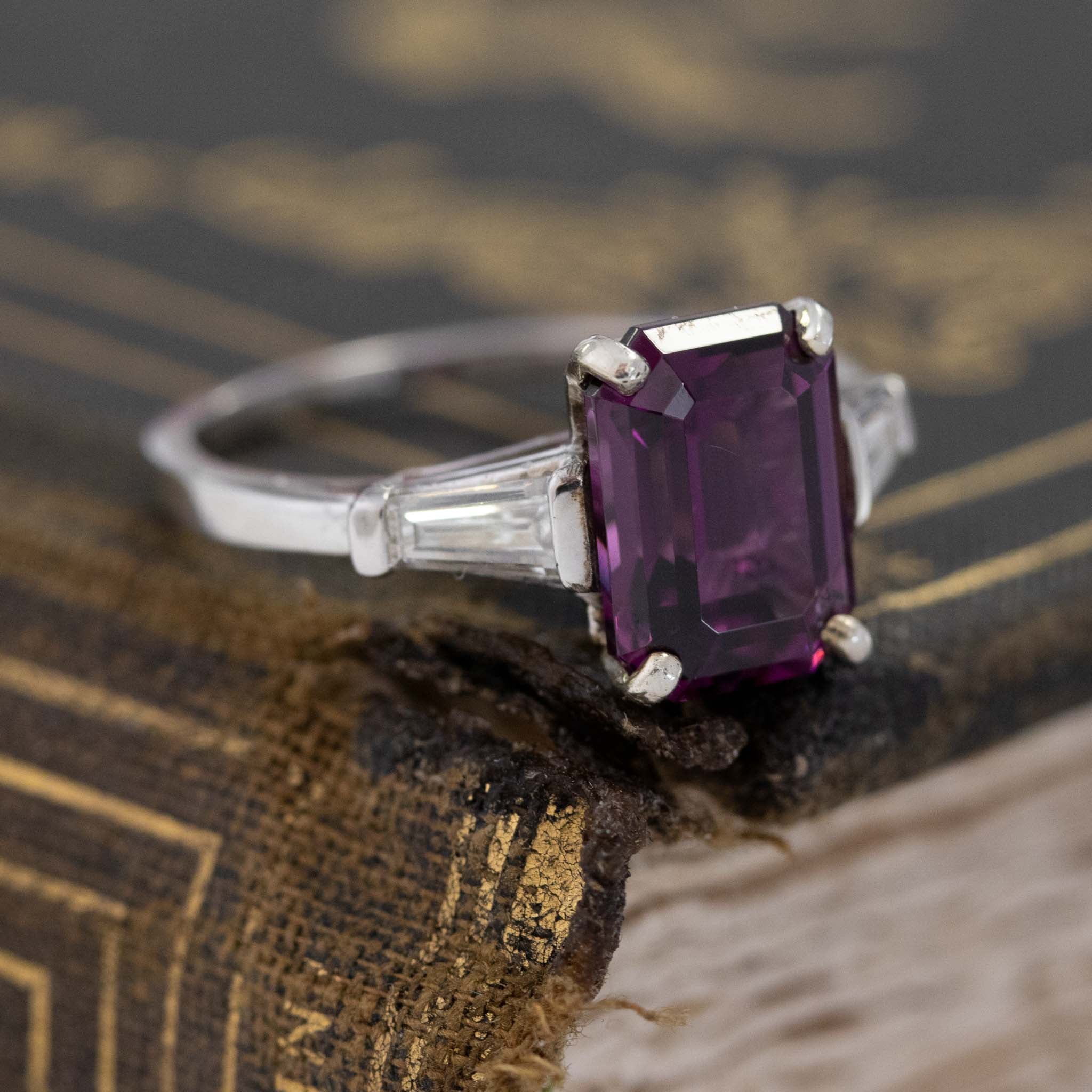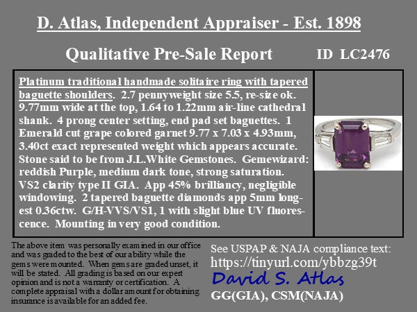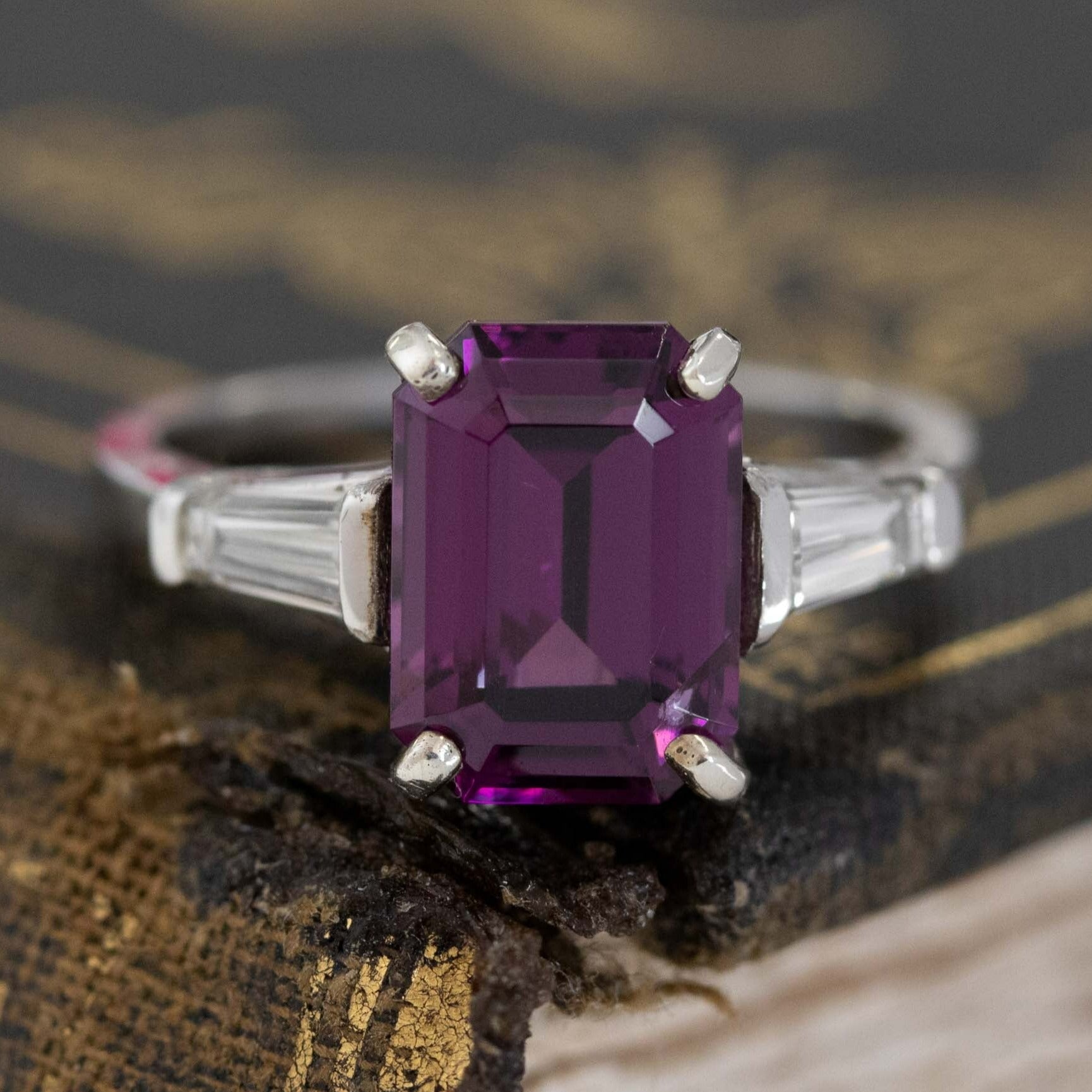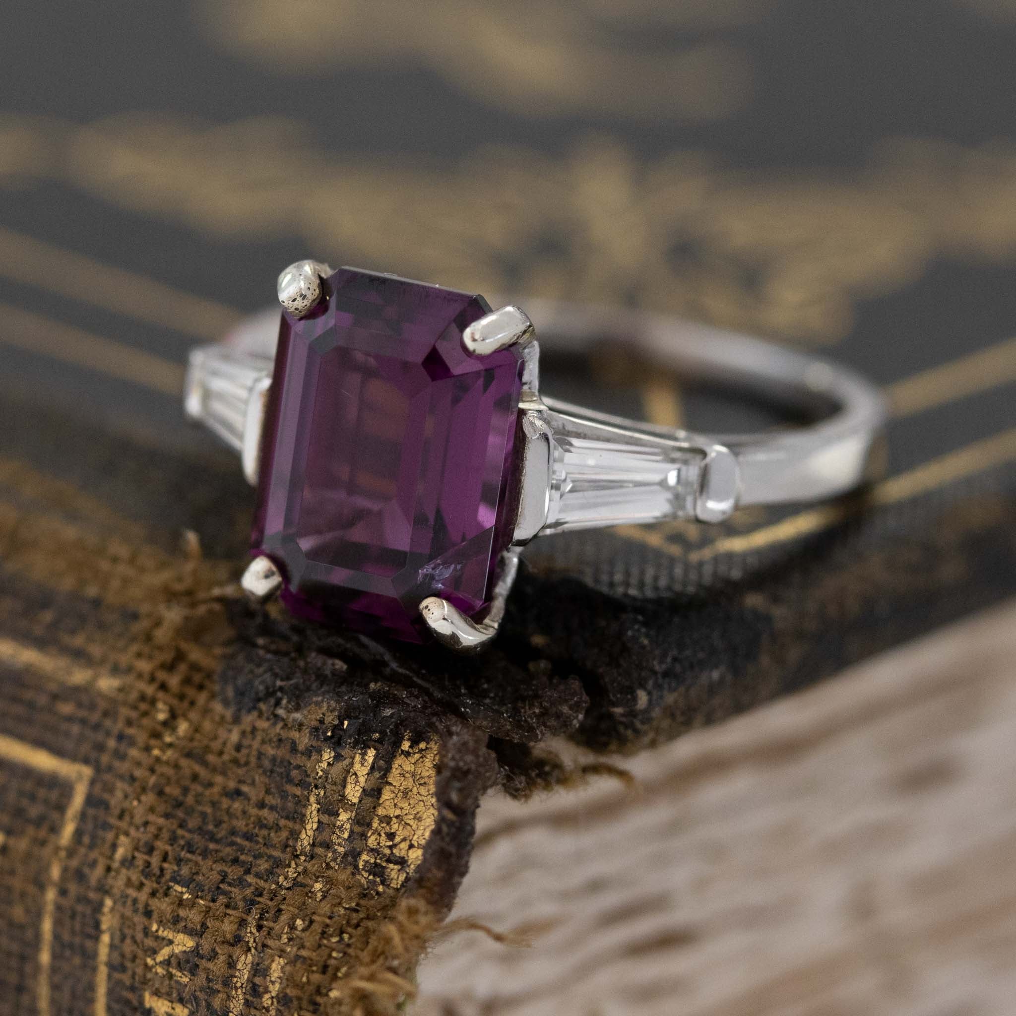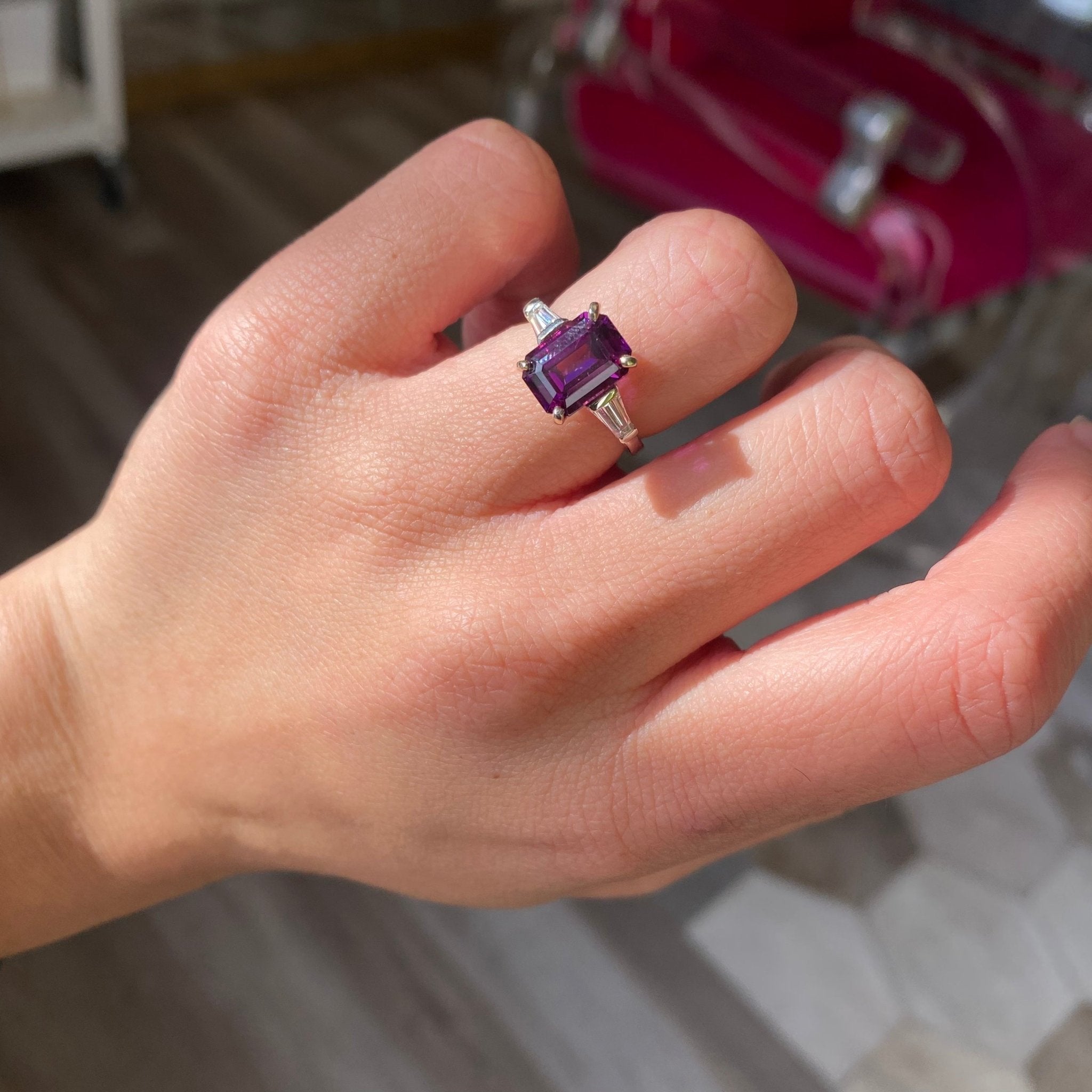 3.76ctw Emerald Cut Jeff White Purple Garnet & Diamond Ring