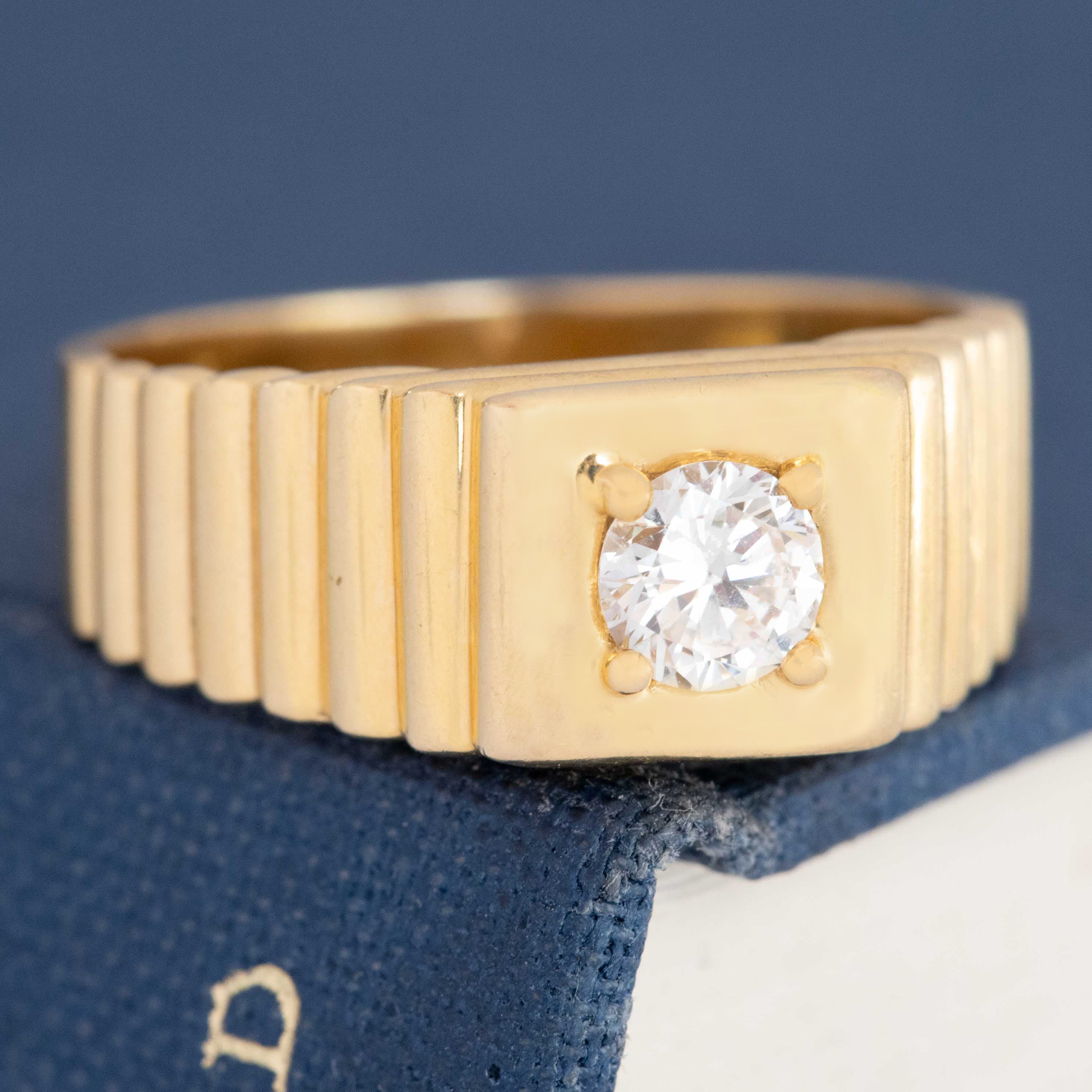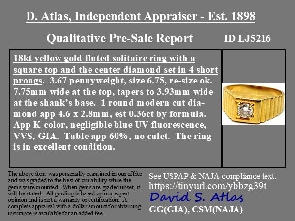 .36ct Vintage Round Brilliant Cut Diamond Fluted Solitaire