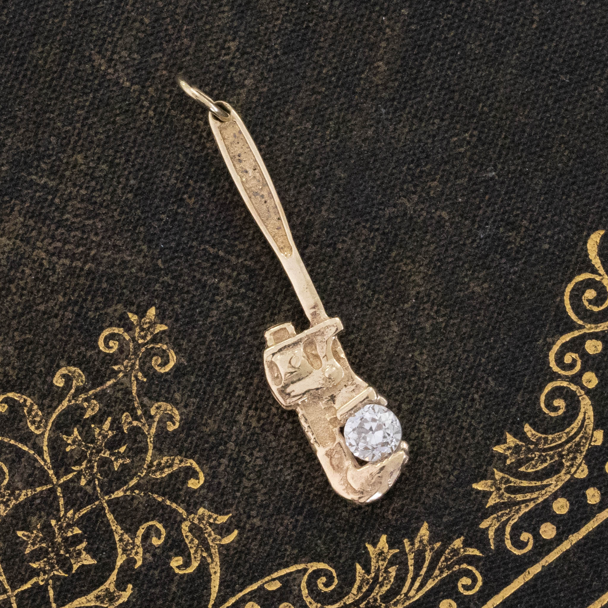 This vintage little gold monkey wrench actually came to us without a diamond, but that open space was begging for something sparkly and we simply had to oblige! This .38ct Old European cut diamond walked in and the rest was history.