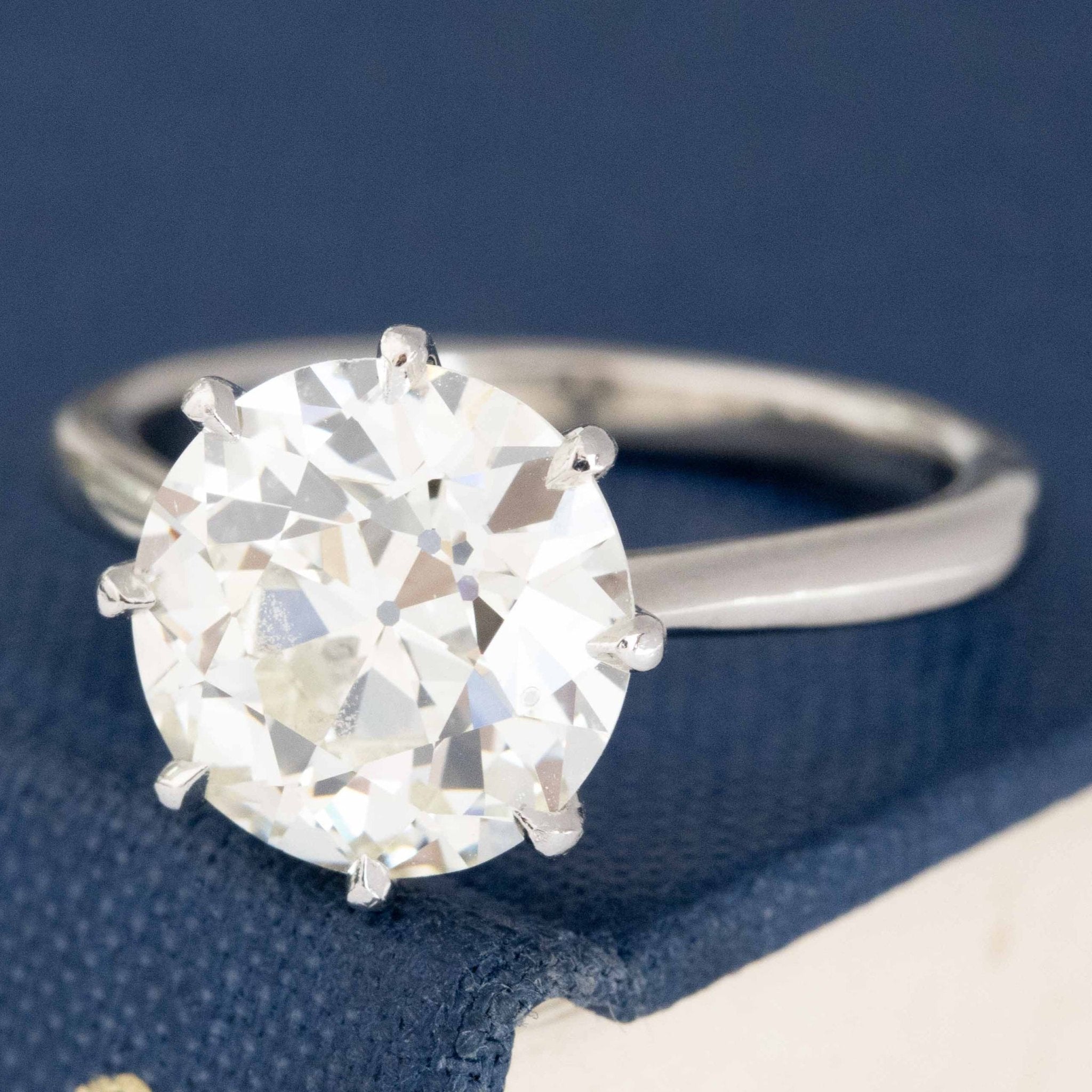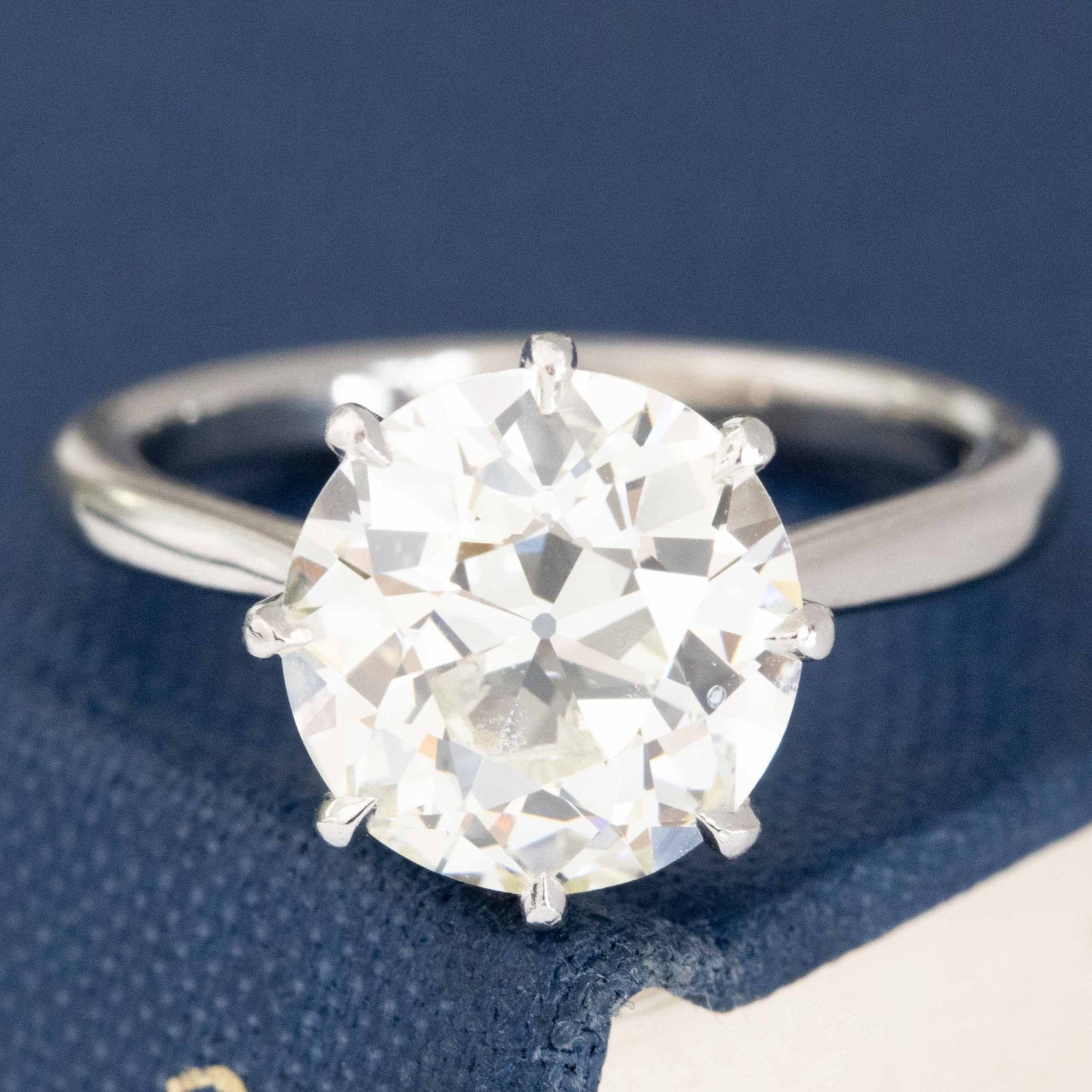 A beautiful, timeless Old Euro diamond solitaire set in icy, hefty platinum. It doesn't get better than this, ya'll! The diamond is graded an L color by the GIA but actually has a much whiter, brighter face-up in person. We love how spready and beautifully faceted this stone is - a total knockout you'll never stop lovin' on.
