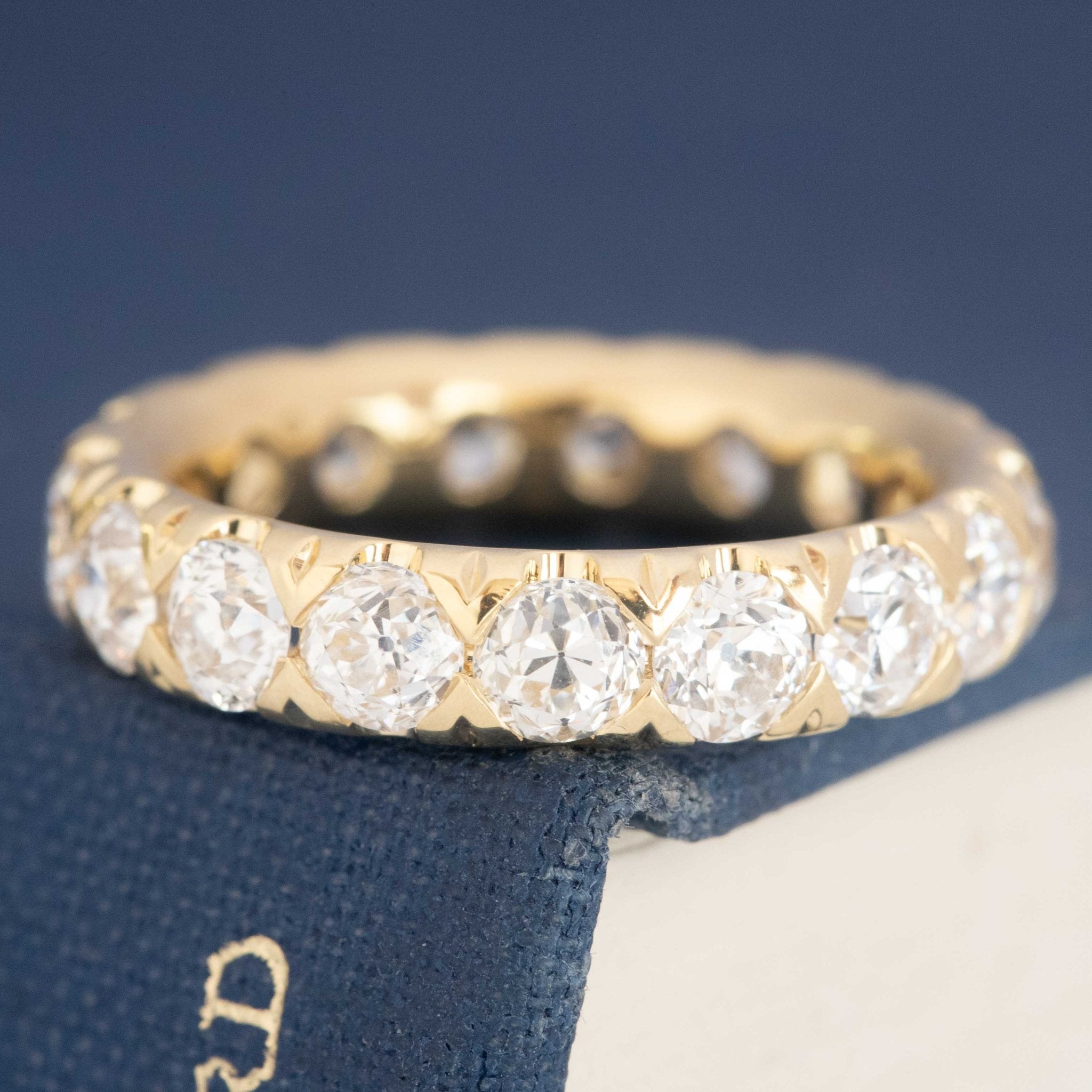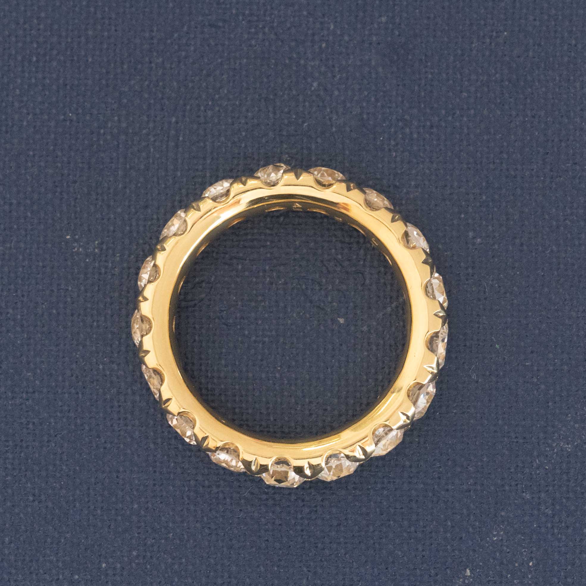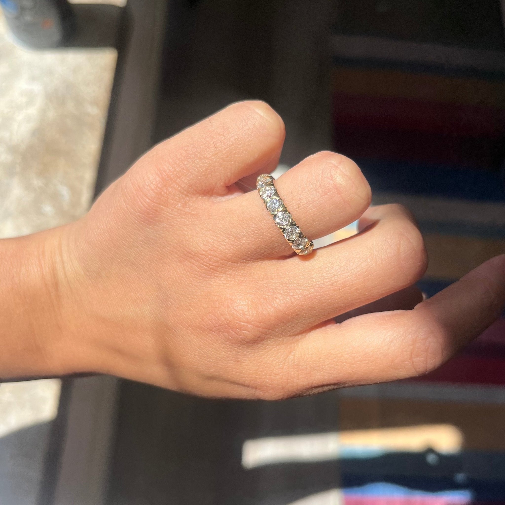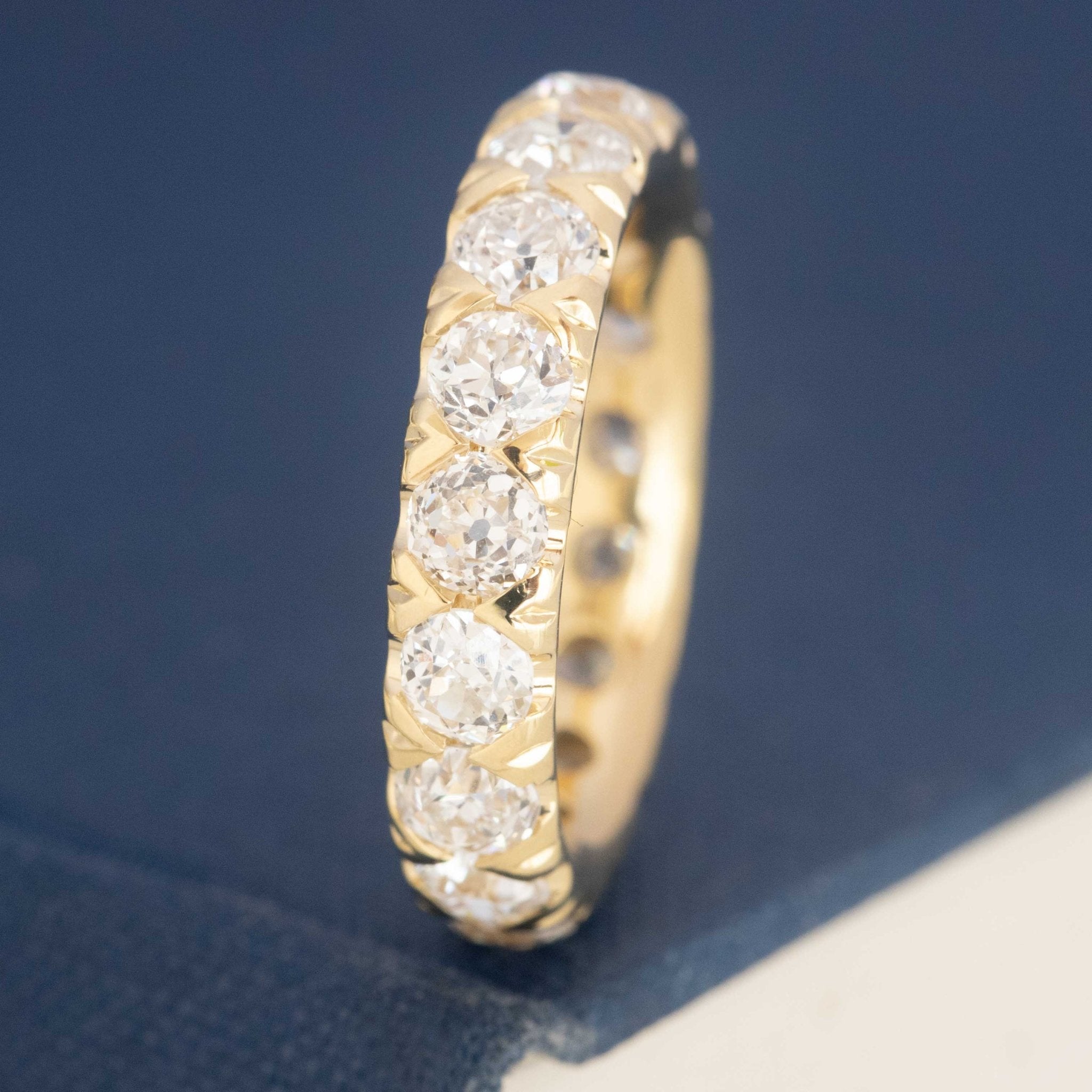 Always timeless and a classic - the eternity band! Ours is set with authentic, upcycled old European cut diamonds with broad chunky facets and super white face up. Low set in platinum, she is the perfect band to add to your stack, or pair with your engagement ring.