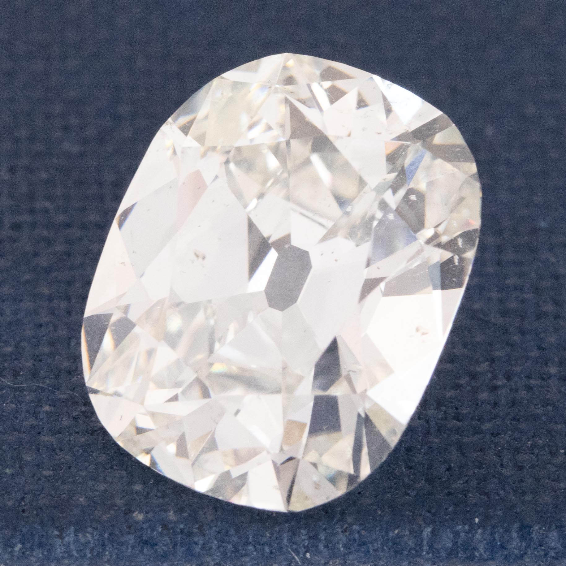 One of the most requested shape from us - the chunky, elongated old mine cut! This particular one is just gorgeous with its higher color and 100% eye-clean in clarity. The diamond is bright, lively, and just beyond charming as it flashes colors with every movement.