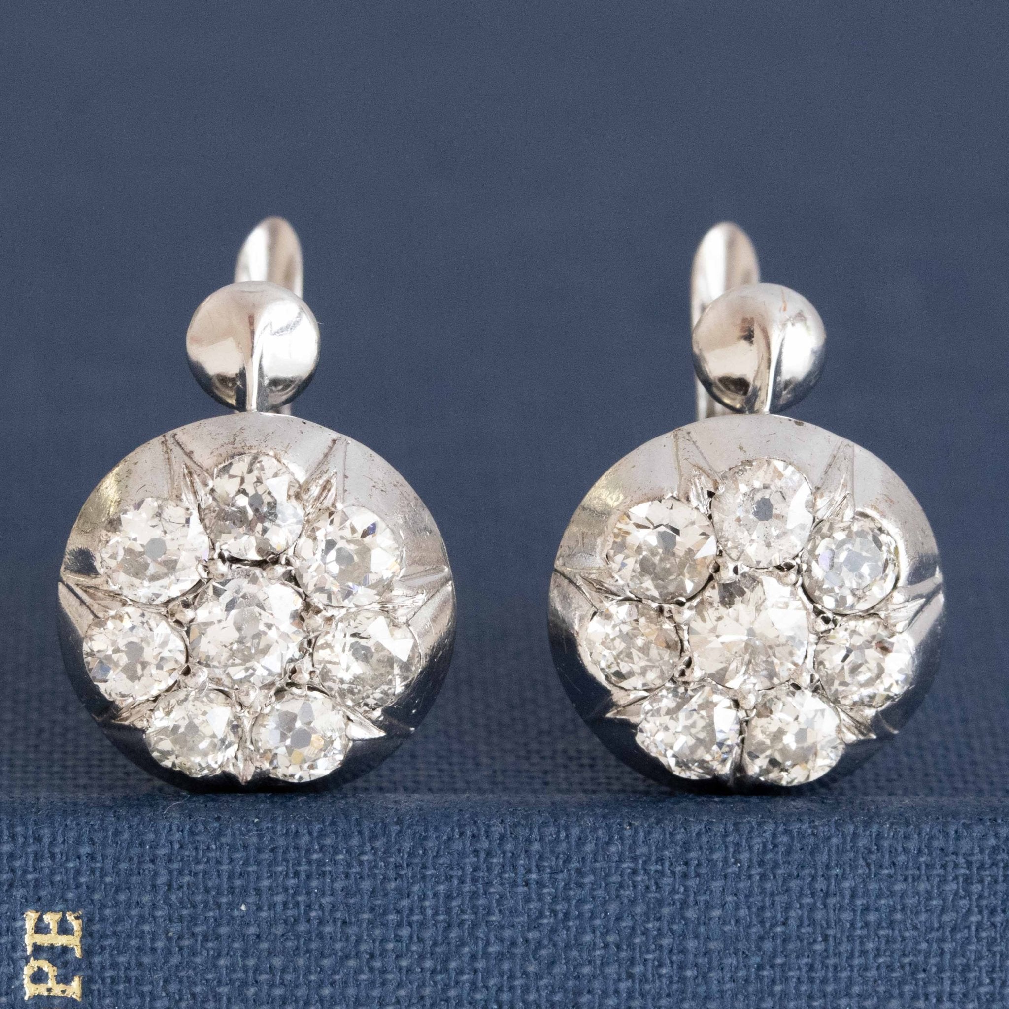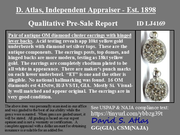 4.15ctw Antique Old Mine Cut Diamond Cluster Earrings